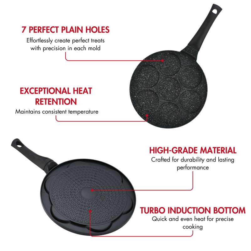 • Design uni à sept emplacements : doté d'un design uni à 7 emplacements élégant et polyvalent, cette poêle ajoute une touche moderne et sophistiquée à vos créations de petit-déjeuner.