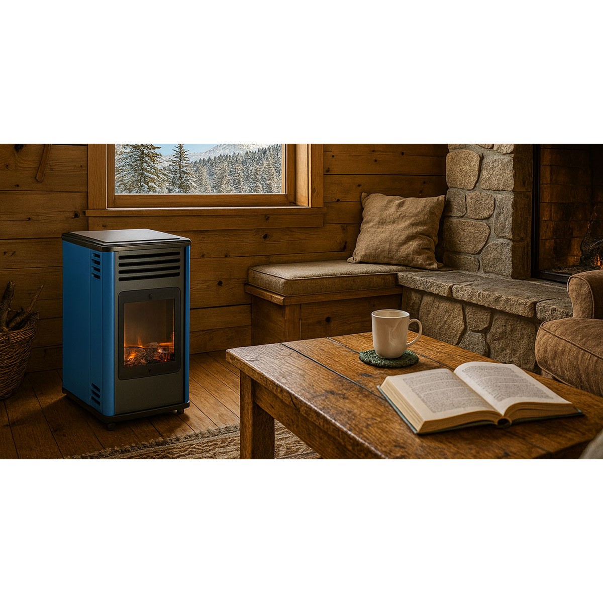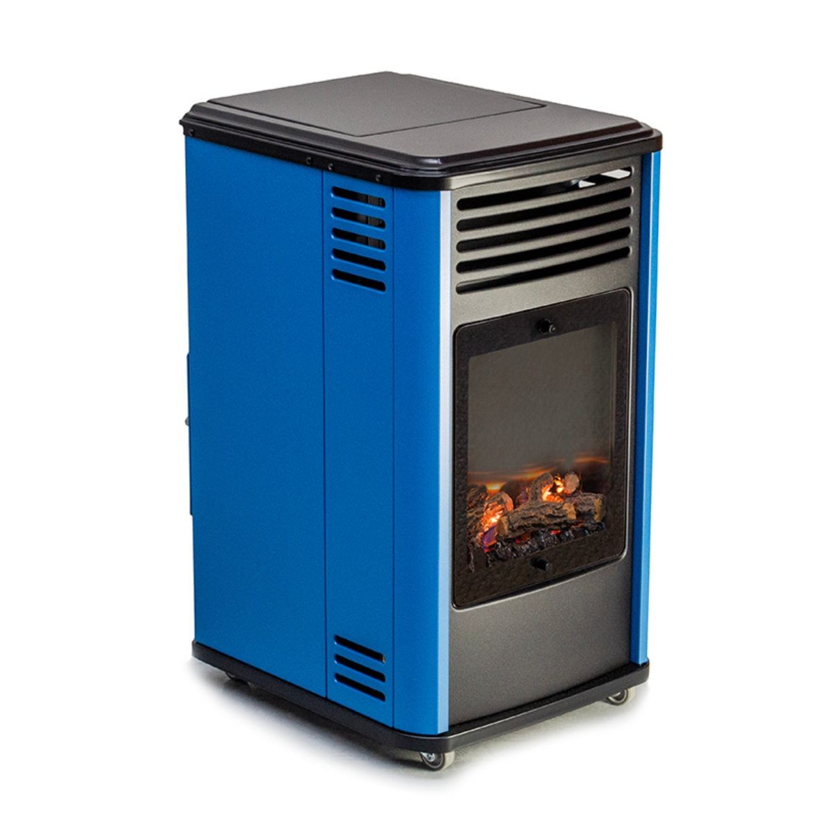 Poêle à gaz 3,4KW Bleu et Noir - Chauffage d'appoint effet Feu de bois Manhattan Sahara
