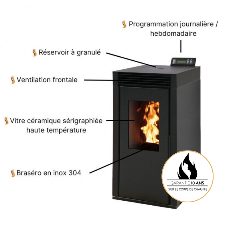 • Il bénéficie d'une autonomie de 21h grâce à son réservoir à granulés de 17kg