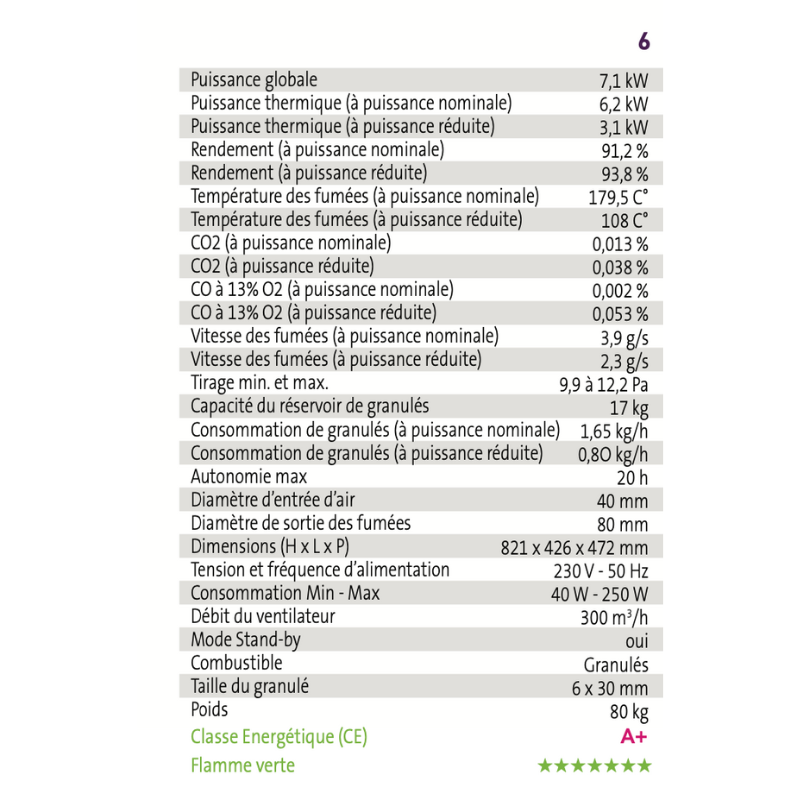 Le MARINA 6 étanche, flamme verte et éco design de fabrication italienne a un très haut rendement (93.80%)