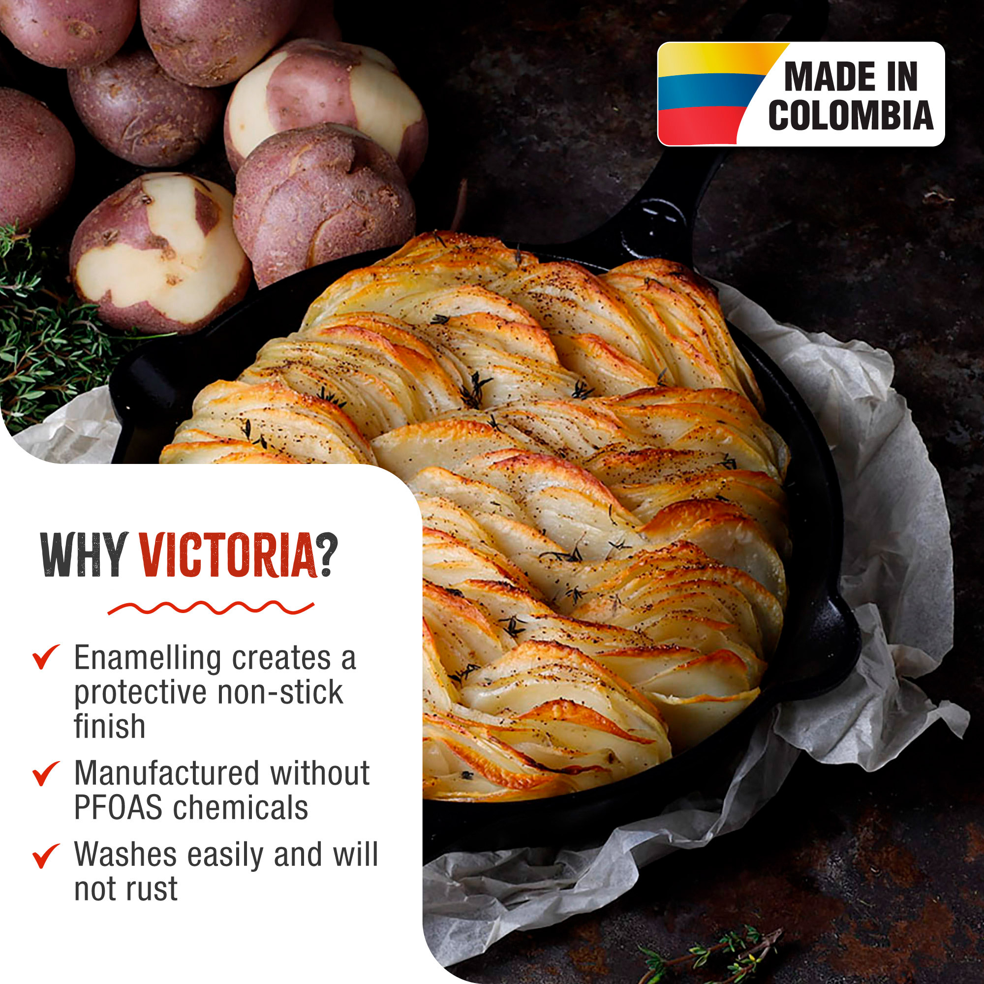 - Tradition et innovation : Victoria est une entreprise familiale qui, depuis sa fondation en Colombie en 1939, n'a cessé de croître en se concentrant sur la fabrication d'ustensiles de cuisine de qualité, cherchant toujours à perfectionner les articles de cuisine traditionnels et réussissant à trouver un équilibre entre innovation et tradition. Aujourd'hui, la marque Victoria est présente, avec ses ustensiles en fonte, dans 40 pays.
