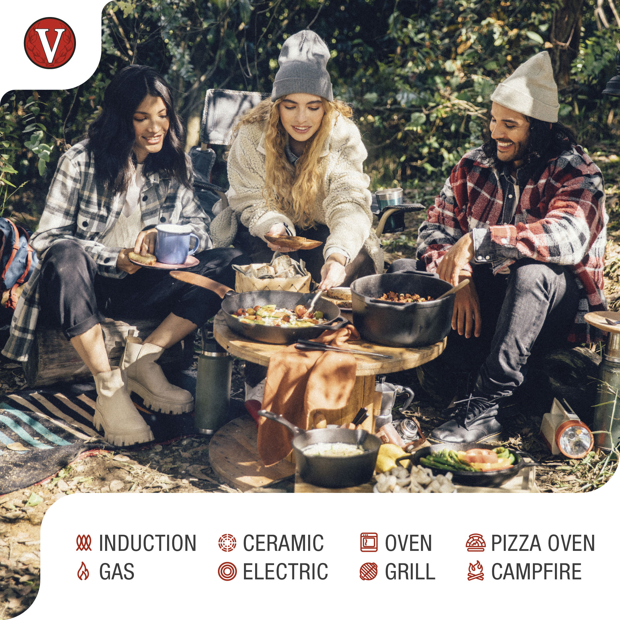 - Adaptée à tous types de cuisines : Excellente poêle adaptée aux feux de camp et aux barbecues, car elle résiste aux températures élevées, idéale pour le camping ou la randonnée. Elle est compatible avec tous les types de cuisinières : induction, gaz, électrique, vitrocéramique et four. Très polyvalente, elle peut être utilisée pour frire, sauter, rôtir, comme poêle de cuisson et servir vos recettes directement sur la table. Ne jamais faire glisser la poêle sur des surfaces en verre ou en céramique pour éviter les rayures.