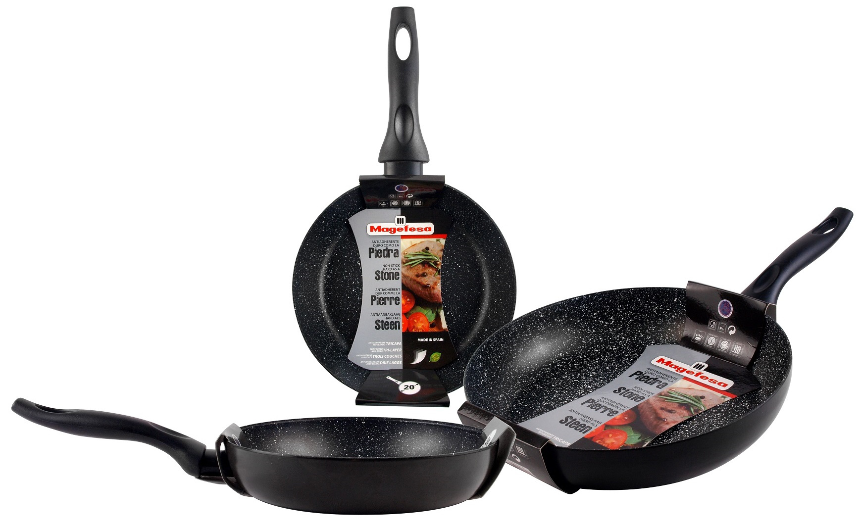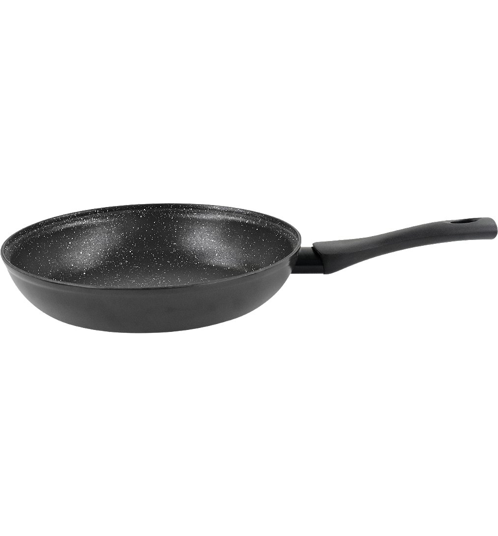 Poêle haute Ø 28 cm tous feux dont induction VITRINOR en acier émaillé avec revêtement antiadhésif aspect "Pierre" ultra-résistant, manche en bakélite soudé, pare flamme noir, fond décoré, extérieur noir mat