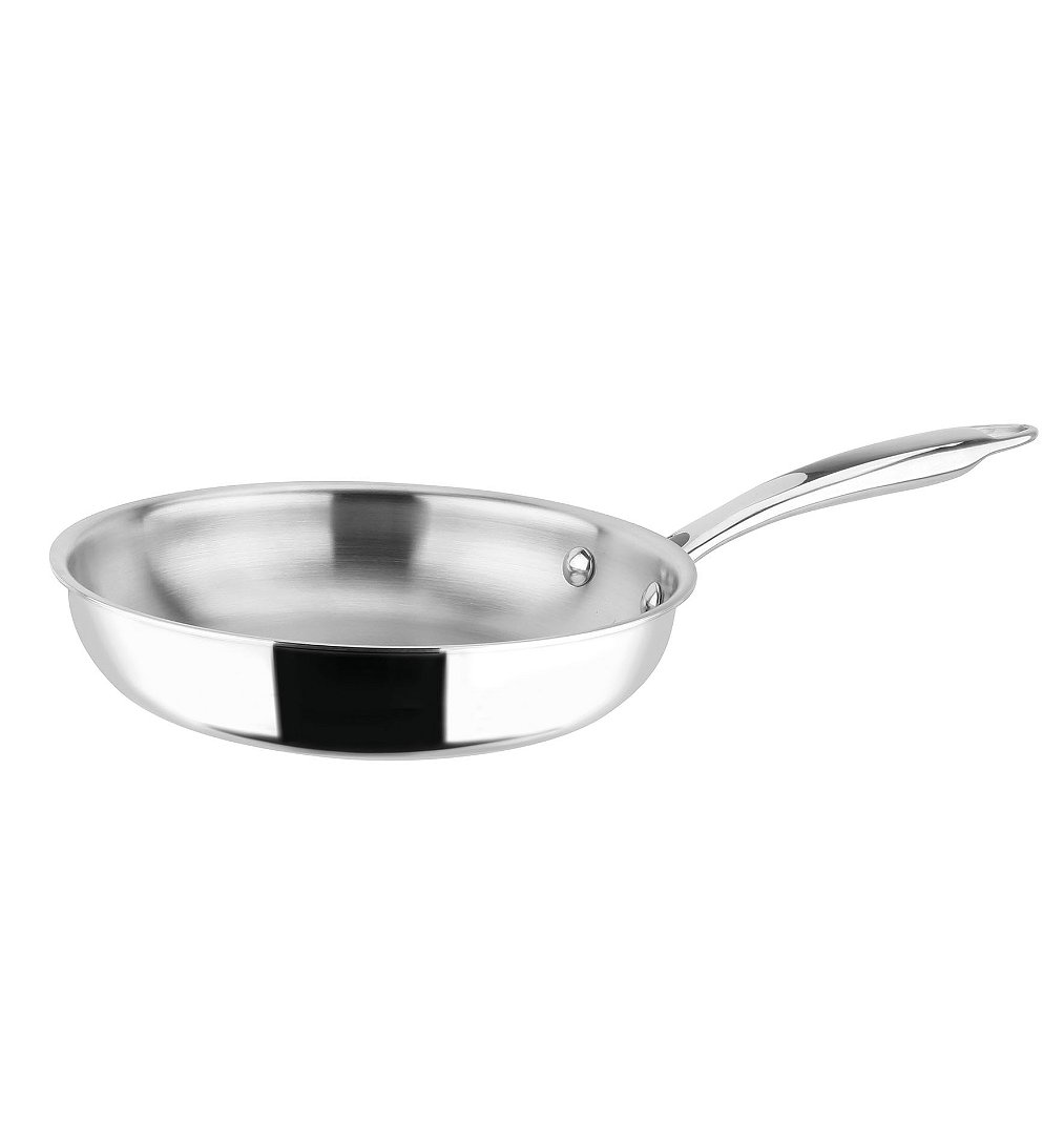 Poêle Inox triply Gamme RAPSODY Ø 20 cm H 4.5 cm Avec manche en inox riveté Intérieur satiné, finition extérieure miroir Epaisseur corps 2 mm Tous feux dont induction Capacité 1 à 2 personnes Grâce à sa structure intégrale composée de 3 couches, vous obtiendrez une diffusion parfaite et homogène de la chaleur. Inox triply 2mm.