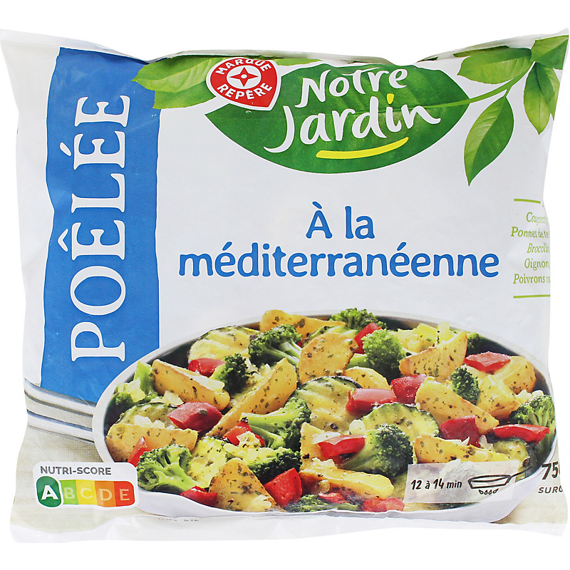 Mélange de légumes (67,3 %) et pommes de terre préfrites, assaisonné, surgelé. NOTRE JARDIN