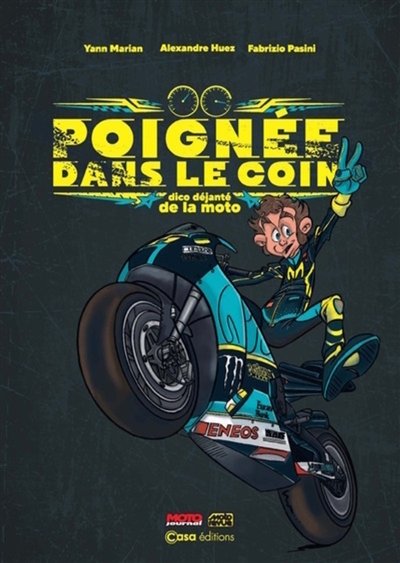 Vous avez envie d'une bonne arsouille pour faire l'aspi à l'autre poireau et son tréteau ? Alors " Poignée dans le coin " est pour vous ! Ce dictionnaire va vous permettre de répondre à bien des questions métaphysique : à toc sur le gras mouillé, volume annoncé ? Le Bon-coin, site de petites annonces ou palais de la chourre ? Le Jet, coffre au trésor de votre dentiste ? Cet ouvrage, clair et précis, vous permettra de comprendre enfin ce que tout cela veut dire... Pour les autres : rigolades assurées ! Un ouvrage indispensable pour tous ceux qui aiment les deux roues motorisés mis en texte par deux spécialistes de la moto et mis en dessin par Fabrizio Pasini (qui roule en Ducati... le pauvre).