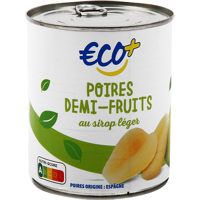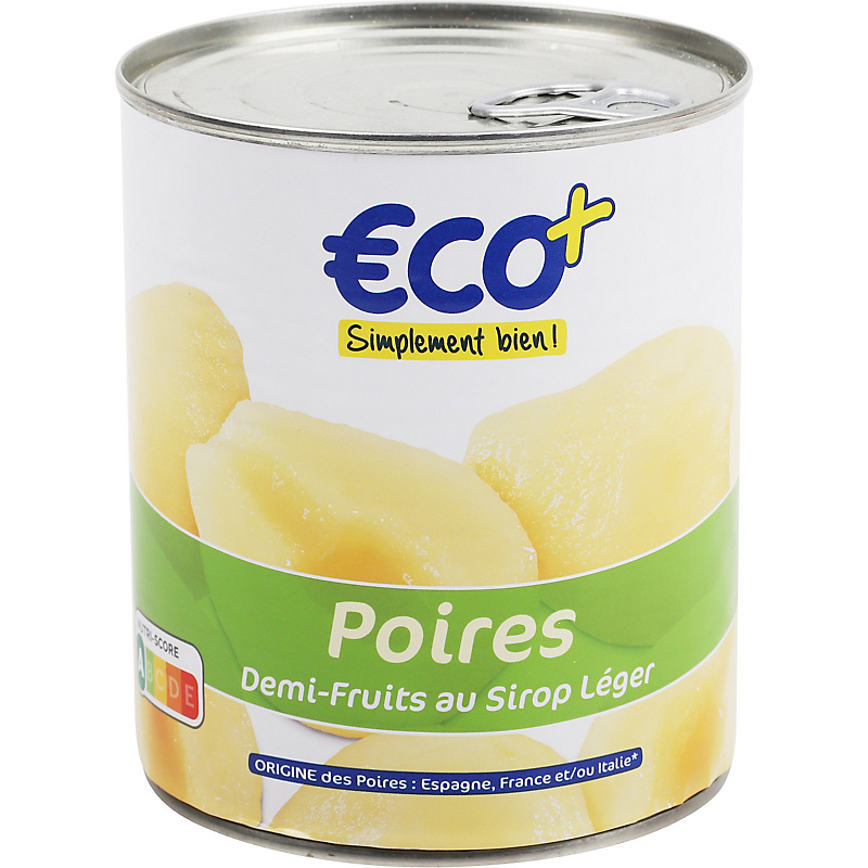 Poires demi fruits au sirop léger - 455 g - ECO +
