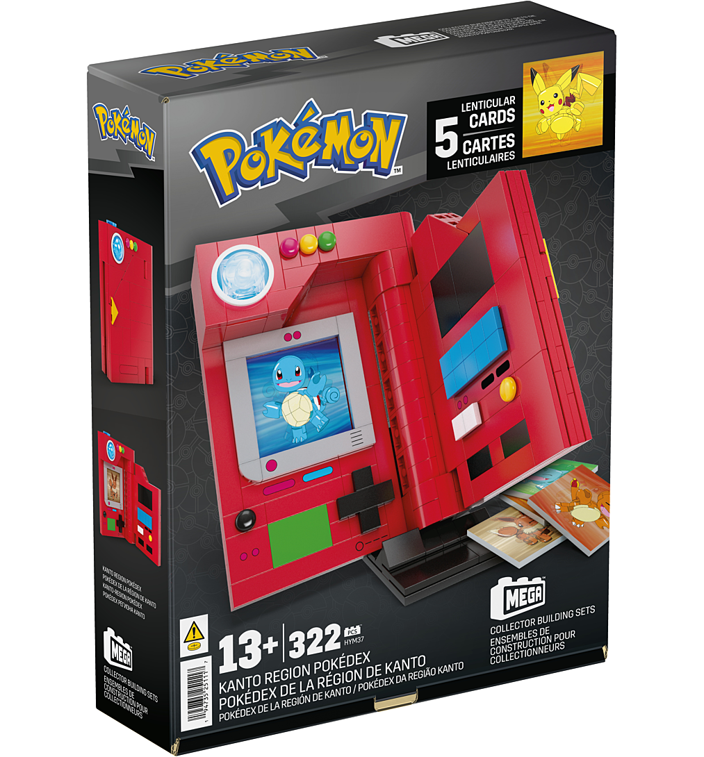 Le parcours de chaque dresseur commence avec son propre Pokédex, et vous pouvez désormais construire le vôtre avec MEGA. Le coffret Pokédex de la région de Kanto plaira autant à celles et ceux qui souhaitent mettre à profit leurs talents de construction qu’aux collectionneurs à qui il pourra servir de pièce d’exposition. Avec son éclairage fonctionnel et ses 5 cartes lenticulaires représentant des Pokémons familiers de la région de Kanto, l’emblématique Pokédex est à construire jusque dans ses moindres détails !