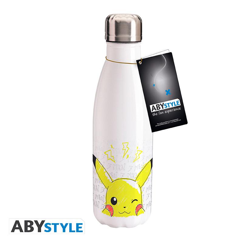Mignon et plein de joie, Pikachu, le Pokémon préféré de tous, s'est hydraté et a dessiné sur cette jolie bouteille par ABYstyle ! - Matière : aluminium et acier - Ne passe pas au micro-ondes ou au lave-vaisselle - Contenance : 500ml.