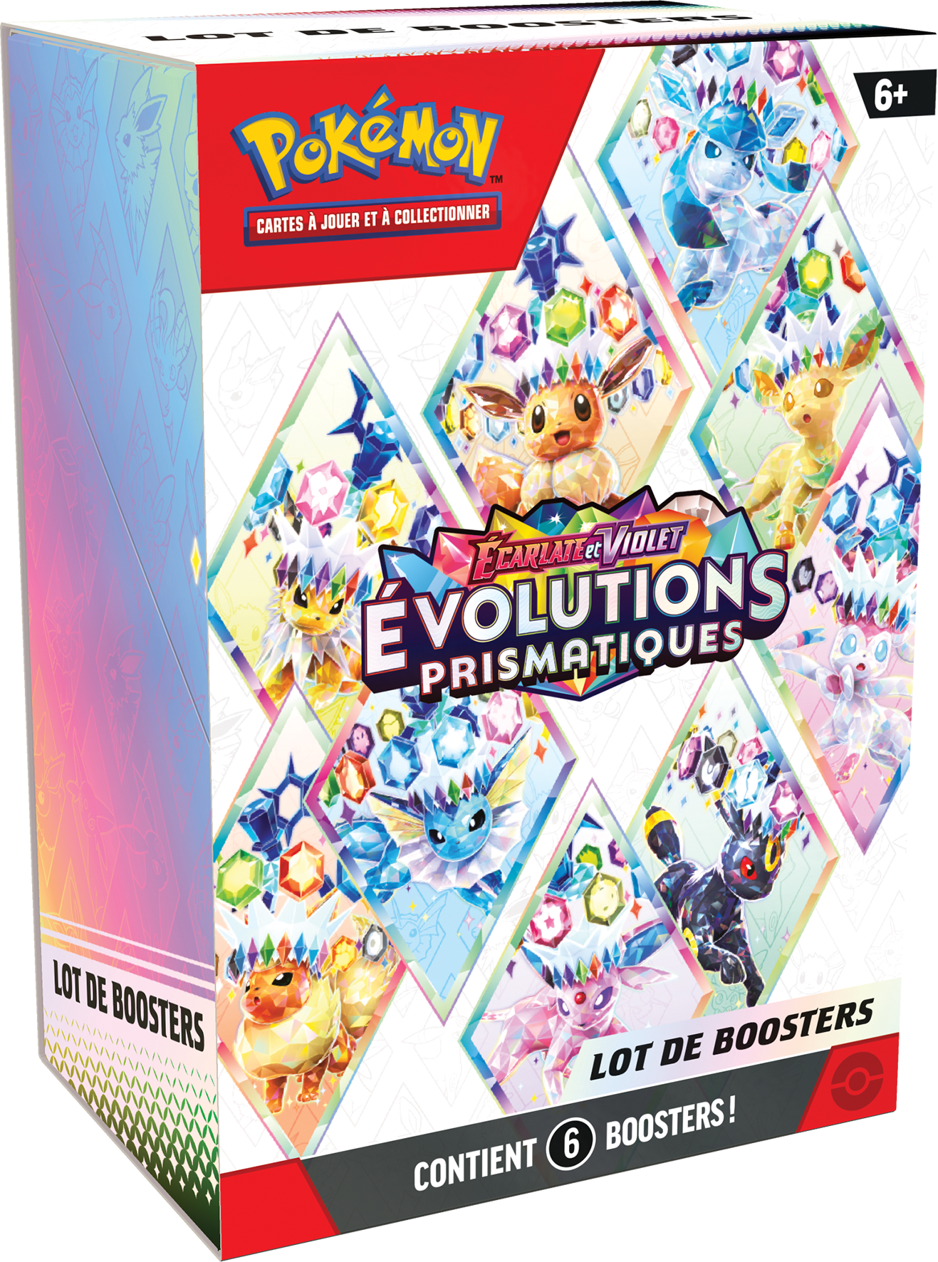 Enrichissez votre collection avec ce lot de boosters contenant 6 boosters Ecarlate et Violet - Evolutions Prismatiques du JCC Pokémon