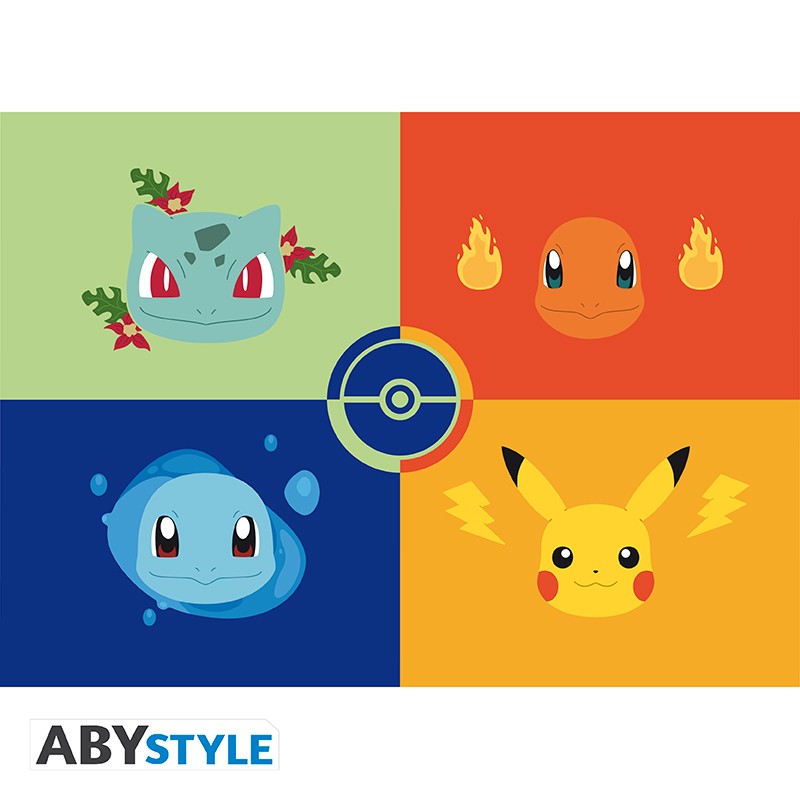 Tous les types de Pokémon figurent sur ces cartes postales colorées, Pikachu, Carapuce, Bulbizarre et Salamèche par ABYstyle.