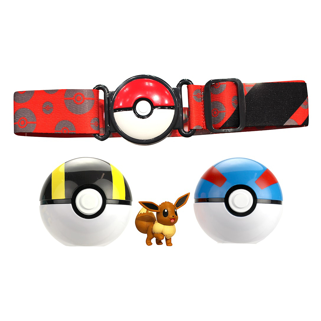 Coffret ceinture Poké Ball Pokémon avec figurine Pokemon de 5 cm, une Pokéball, une Luxury Ball et une ceinture