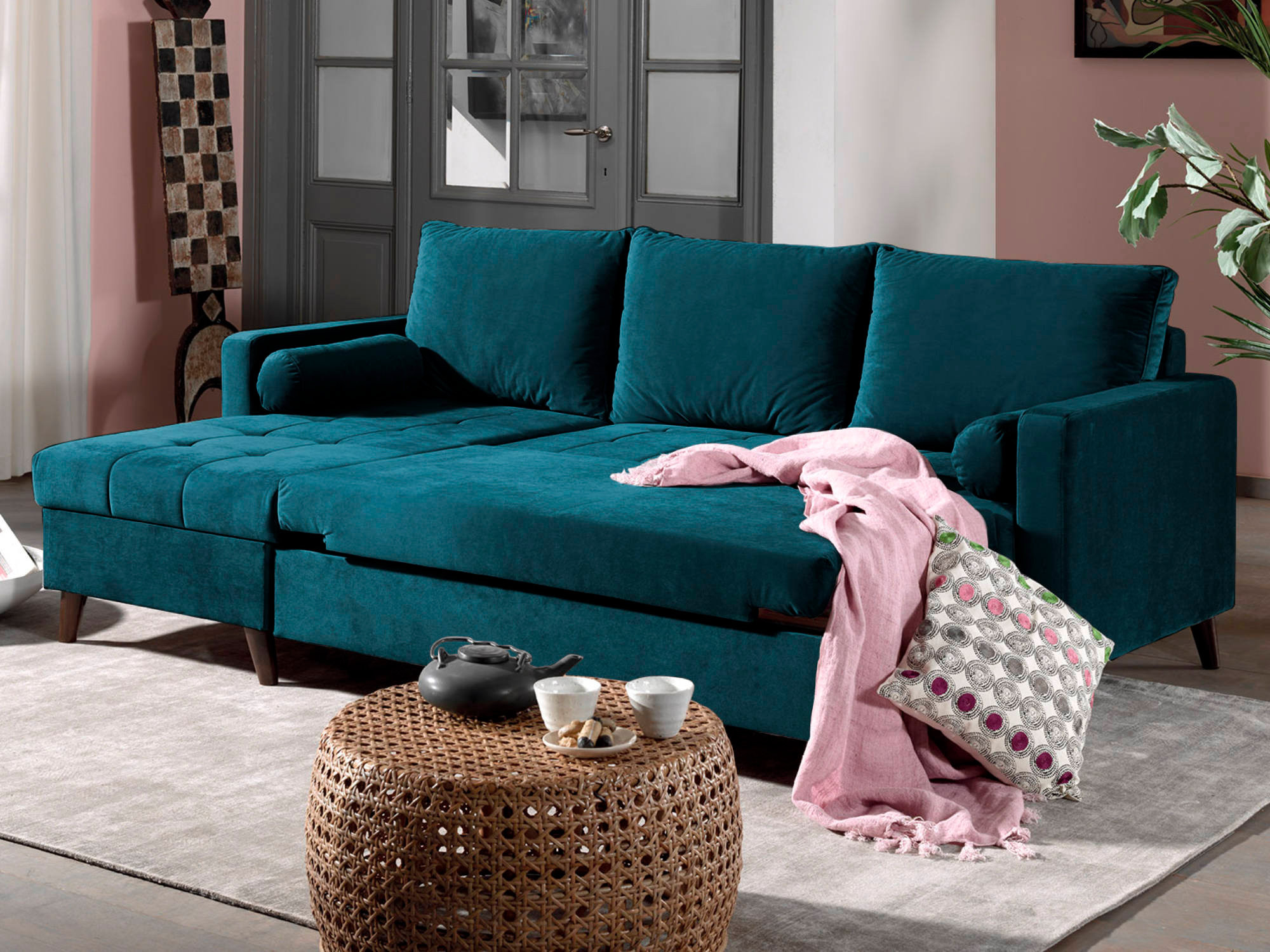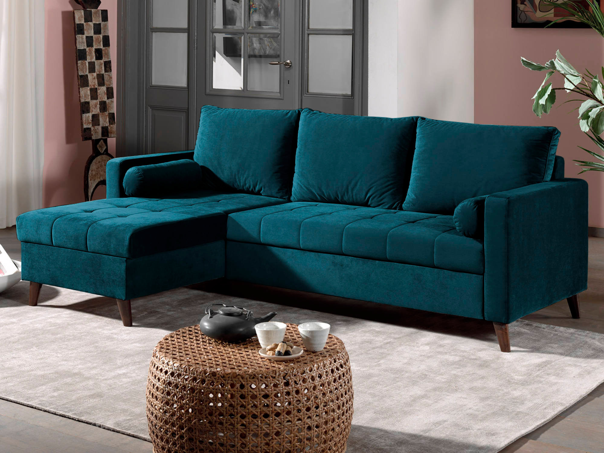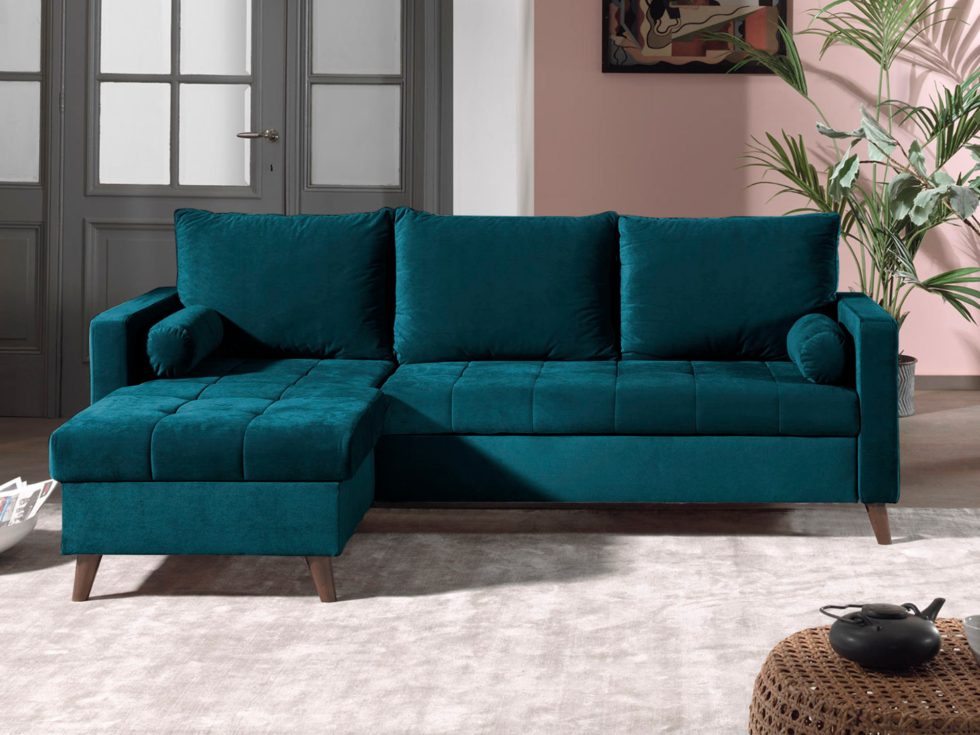 Très pratique si vous aimez changer régulièrement la disposition de votre salon, le canapé d’angle réversible convertible en velours Polar s’adapte à votre intérieur. En quelques minutes, vous démontez les accoudoirs et changez l’orientation de la méridienne : à gauche ou à droite. C’est simple, pratique et vous avez le choix.