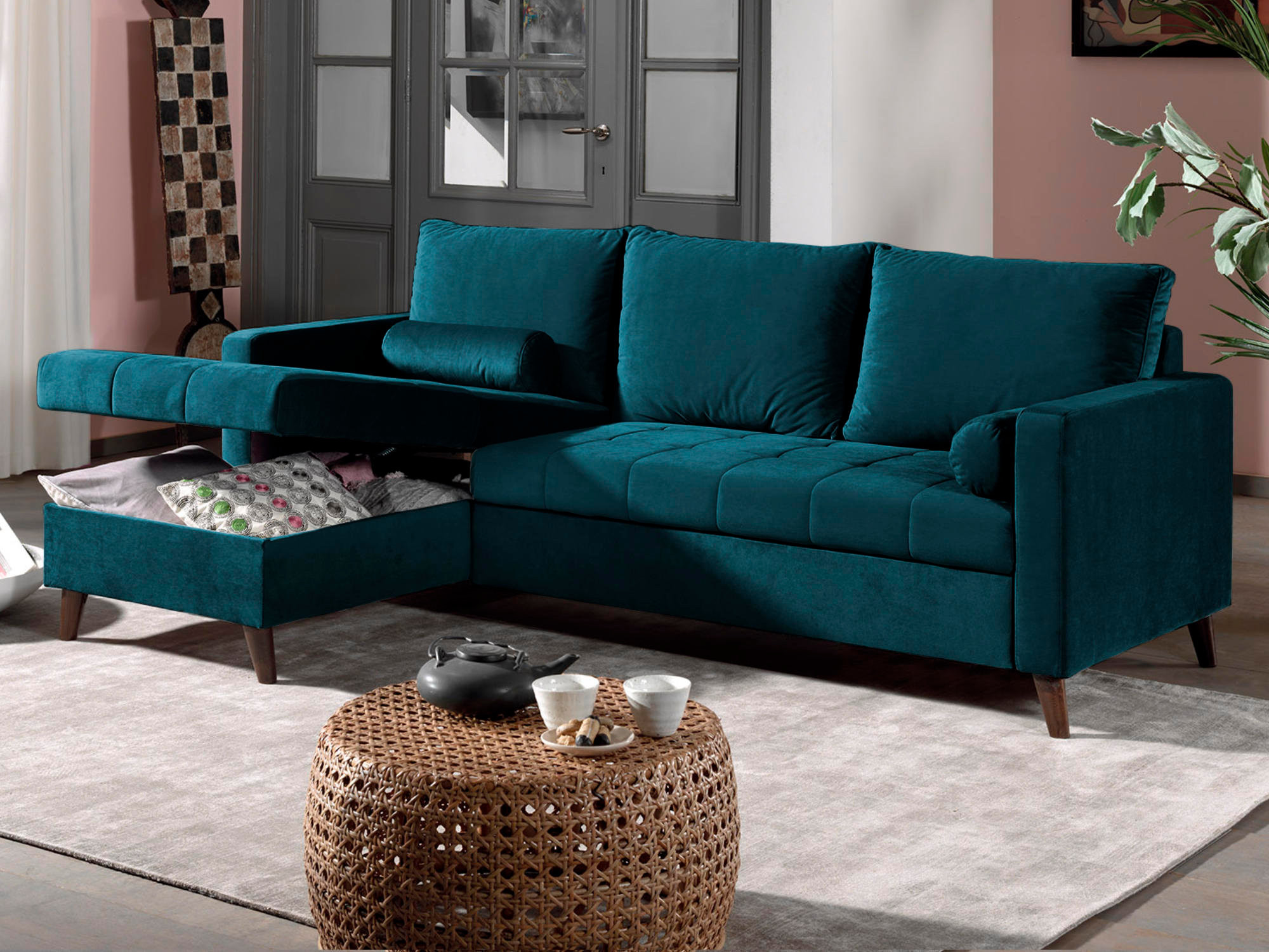 Véritable invitation au cocooning, le canapé d’angle réversible convertible en velours Polar est doux, chaleureux et chic, il transformera ainsi votre salon en un espace cosy et douillet idéal pour les longues soirées d’automne et d’hiver ou les dimanches après-midi en mode slow life. A chaque couleur, sa tendance déco avec le canapé d’angle réversible convertible en velours Polar qui est proposé en plusieurs coloris. Romantique et cosy en couleur rouge, il apportera une touche vintage dans sa robe verte. Pour une décoration scandinave, optez pour le gris plus neutre ou alors le bleu tellement tendance. Dans une pièce un peu sombre, choisissez le Polar jaune pour donner du pep’s à votre décoration. Vous avez l’embarras du choix !