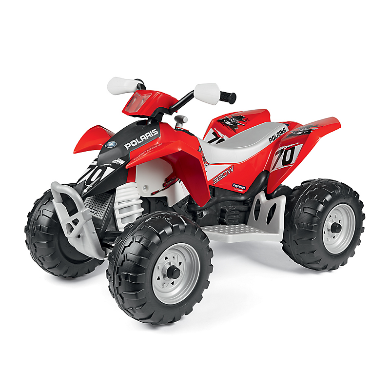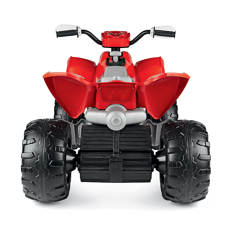 Quad 1 place 12 volts 2 vitesses et marche arrière accélérateur et frein à la pédale très bonne adhérence au sol 2 roues motrices. Klaxon - Grondement moteur - tableau de bord électronique avec bouton START - feux avant à LED - indicateur de charge de la batterie - entrée MP3. Livré avec chargeur et batterie.