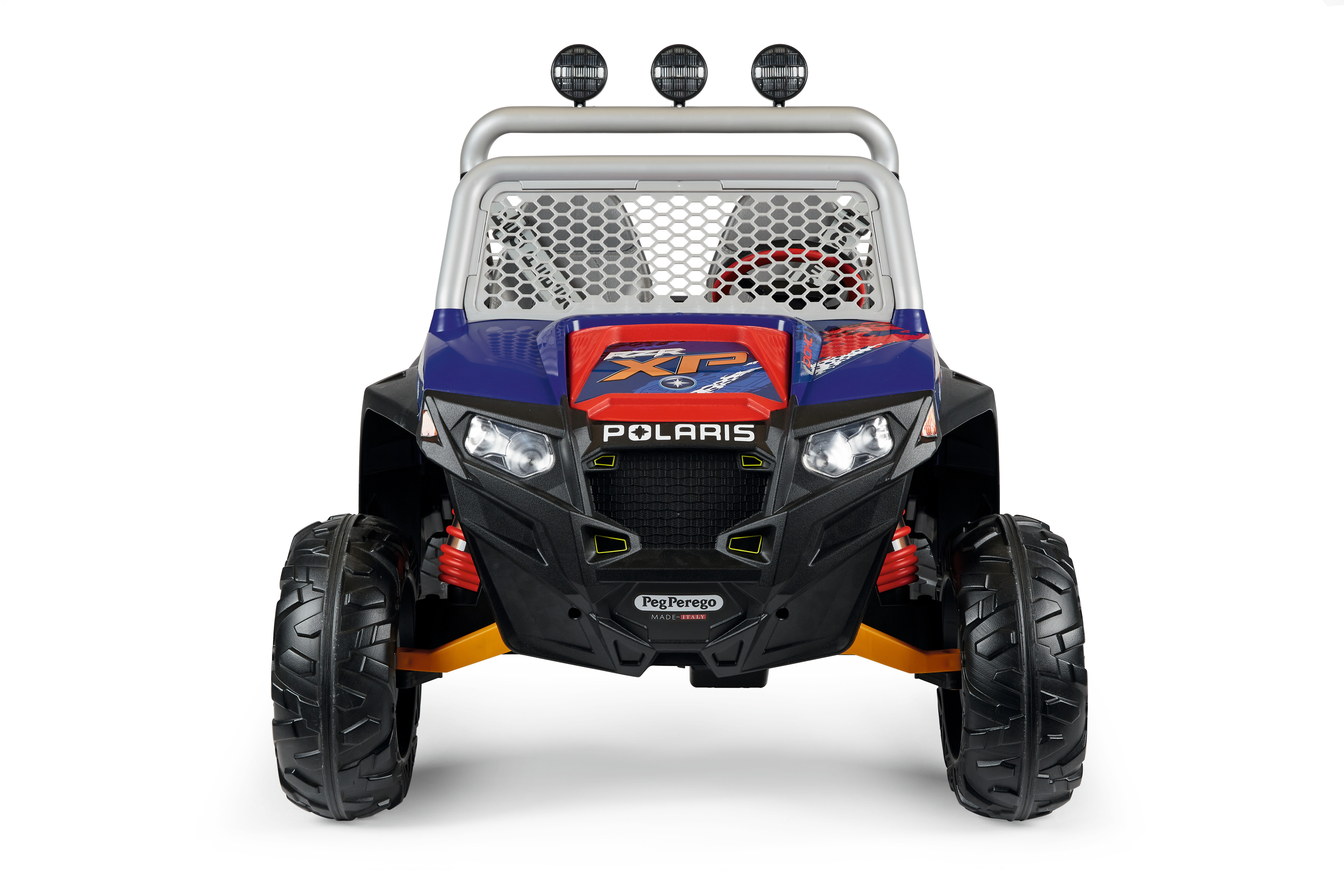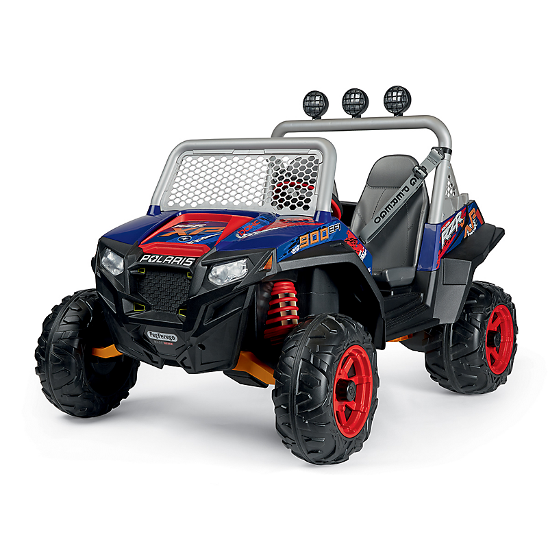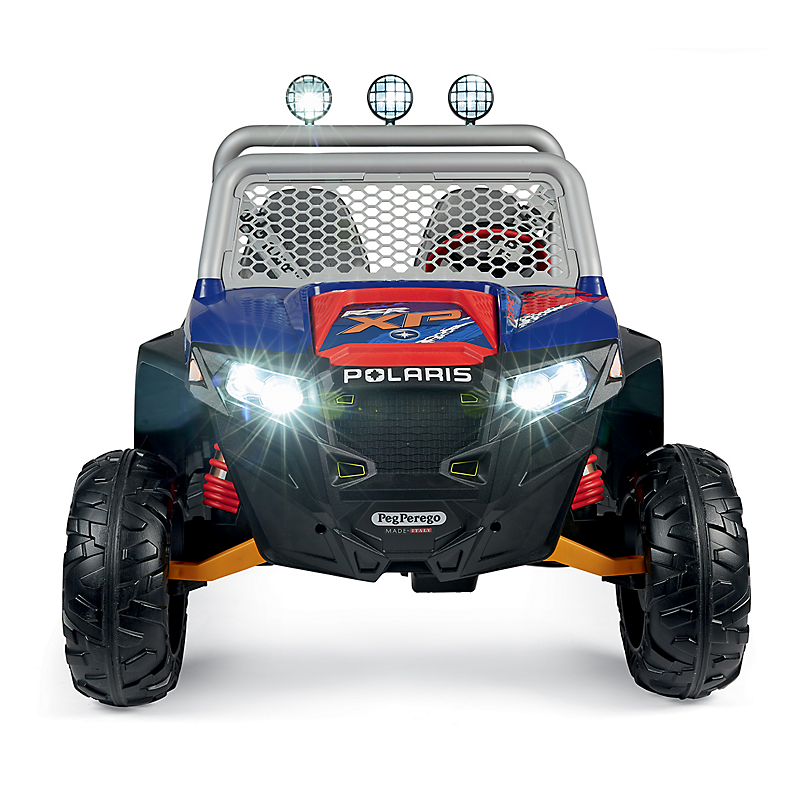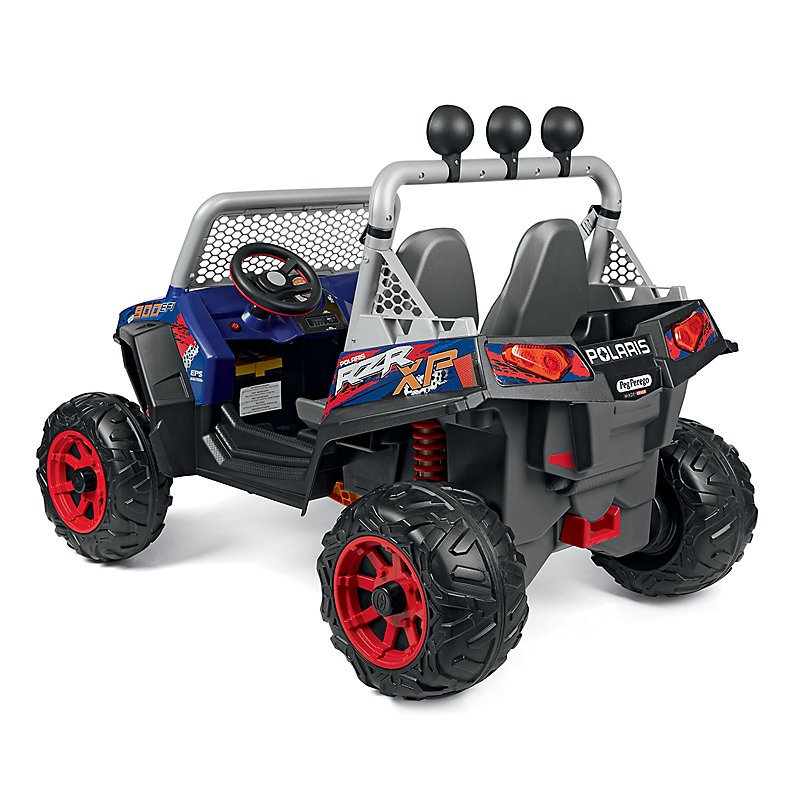 Voiture 2 places 12 volts - Klaxon. Radio FM compatibilité MP3. Grondement moteur - tableau de bord électronique avec bouton START - feux avant à LED - 3 lumières LED sur roll-bar. Indicateur de charge de la batterie. Ceintures de sécurité. Sièges réglables en fonction de la croissance de l'enfant. 2 vitesse et marche arrière. Accélérateur et frein sur la même pédale. 2 roues motrices. Livré avec chargeur et batterie.