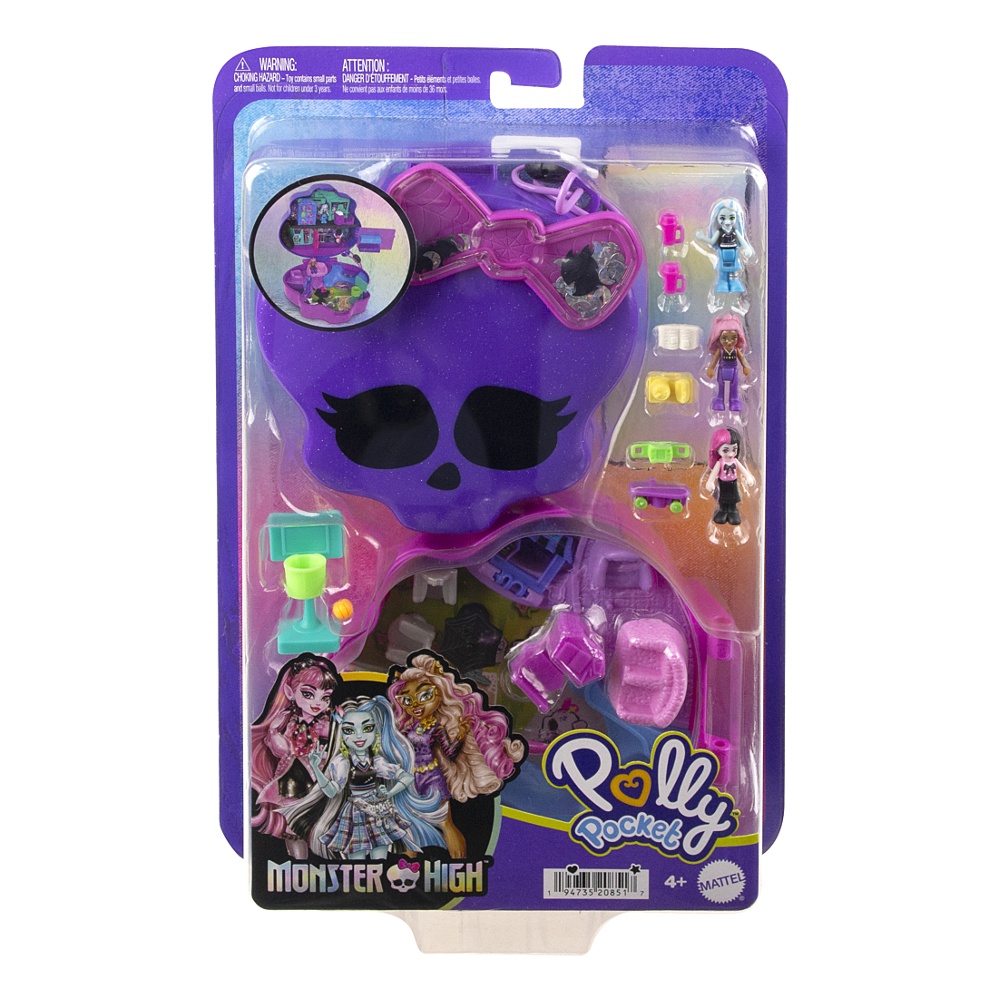 Les goules préférées des fans deviennent minuscules dans ce coffret issu d’une collaboration entre Polly Pocket et Monster High ! Reprenant l’emblématique forme de crâne, l’extérieur du coffret est orné d’un nœud rempli de chauves-souris pailletées. Il s’ouvre pour révéler un décor effroyablement adorable de skatepark et de lycée. Terreur garantie avec 3 des goules vedettes de Monster High : Draculaura, Clawdeen Wolf et Frankie Stein en modèle réduit et 10 accessoires thématiques. Faites glisser la bibliothèque pour découvrir une surprise sang-sationnelle, enchaînez les figures incroyables au skatepark ou disputez un match de linceul-ball ! Ce coffret monstrueusement mignon est idéal pour les fans de Monster High et de Polly Pocket. Les couleurs et les décorations peuvent varier.