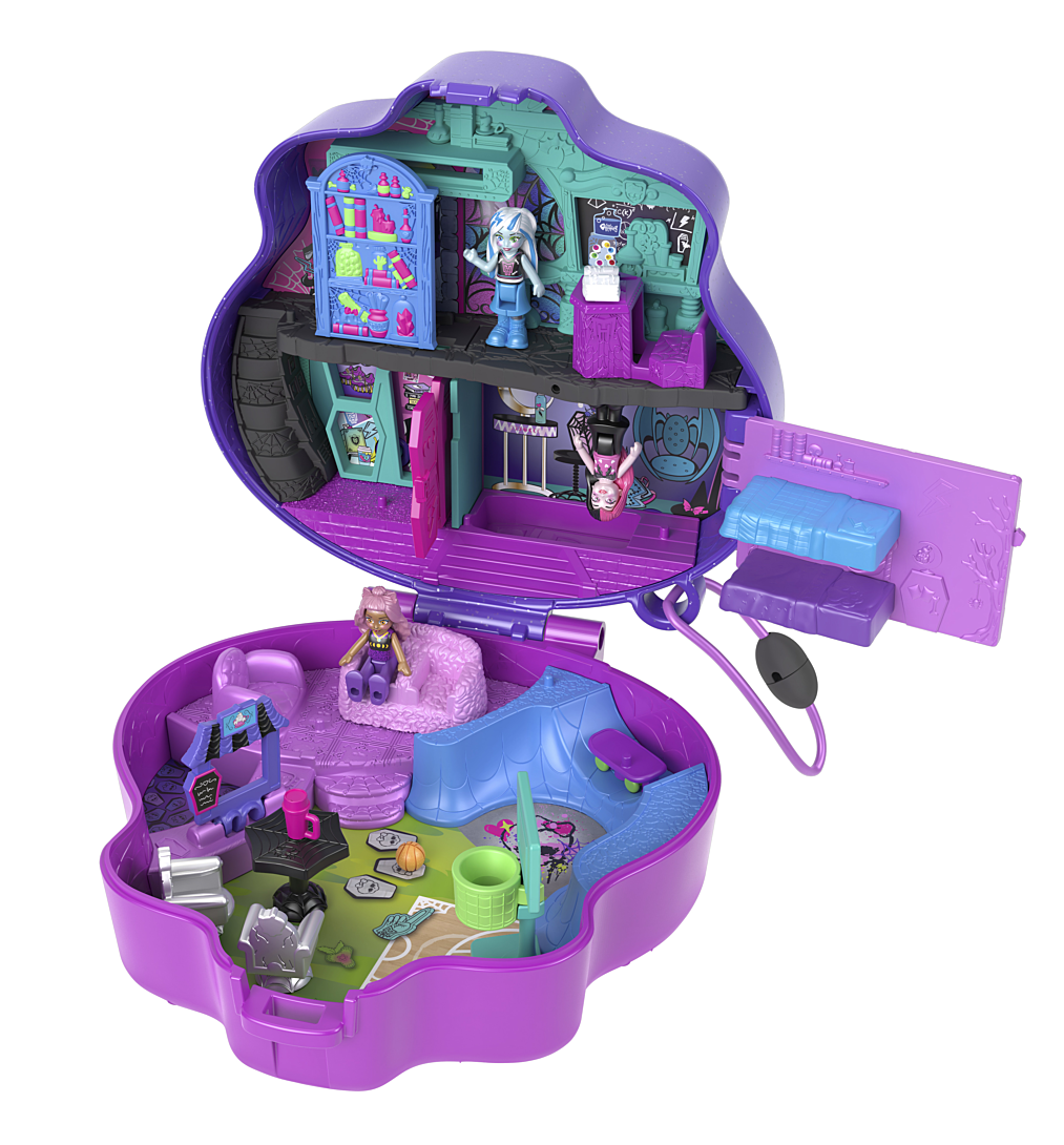 | Plus produit | Amusez-vous avec vos goules préférées en modèle réduit dans ce coffret réunissant les univers Polly Pocket et Monster High ! |