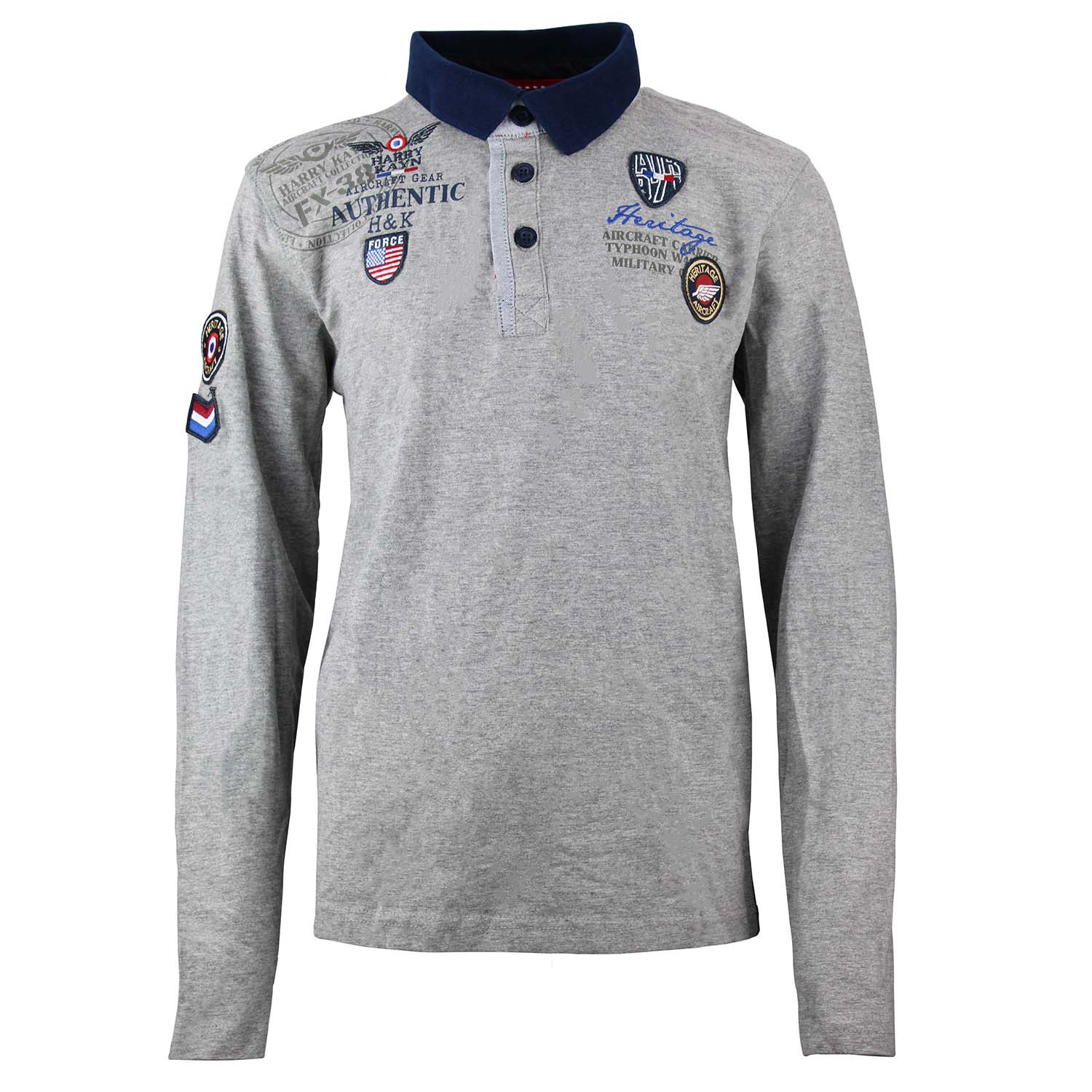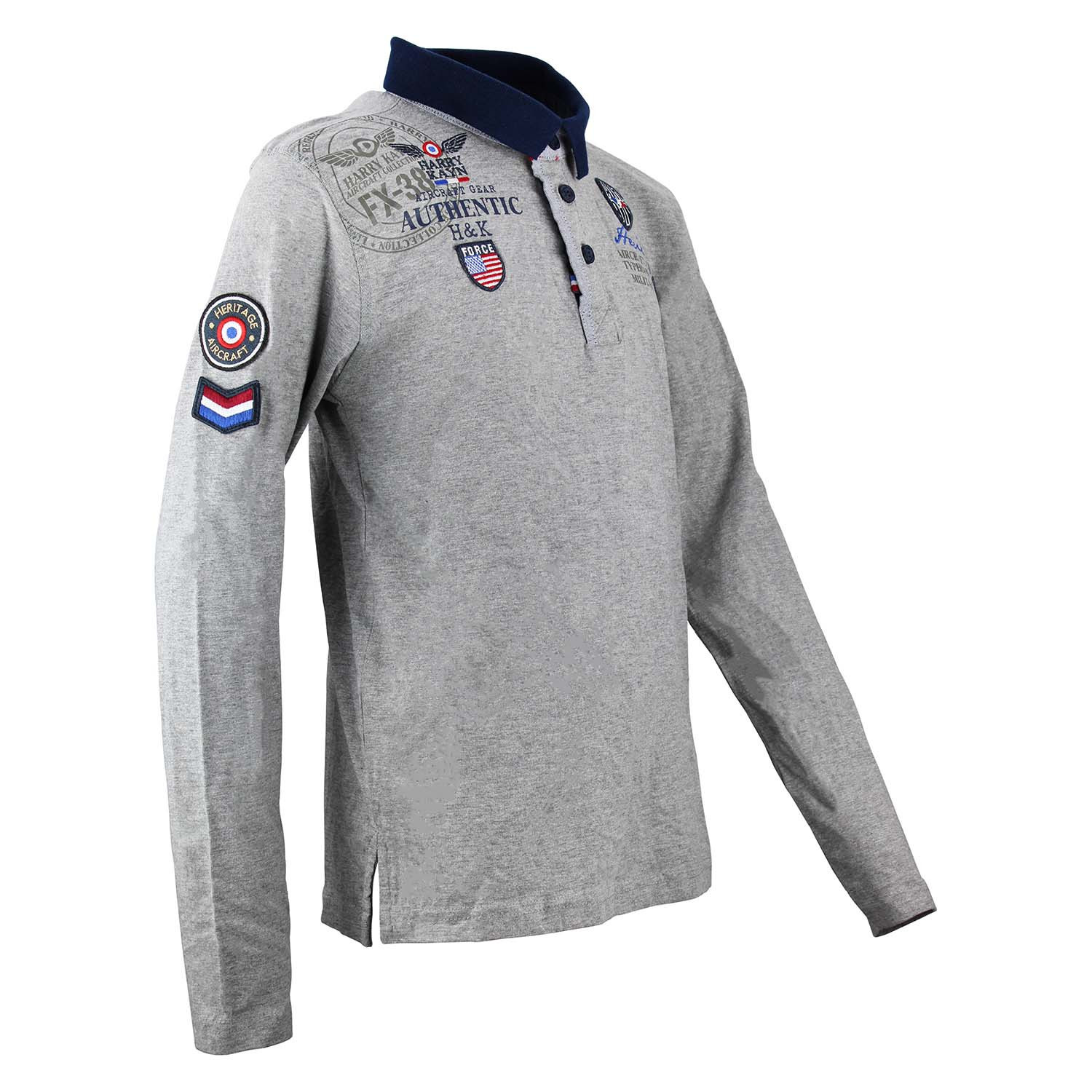 Col polo garçon contrastant Manches longues, écussons sur la poitrine, la manche droite et au dos Finitions revers