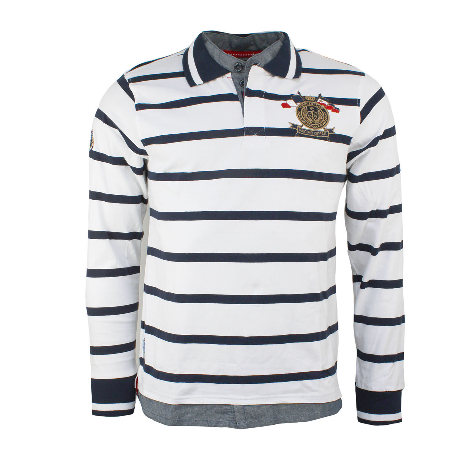 Polo Manches longues, col pointes libres, fermeture boutonnée, motif