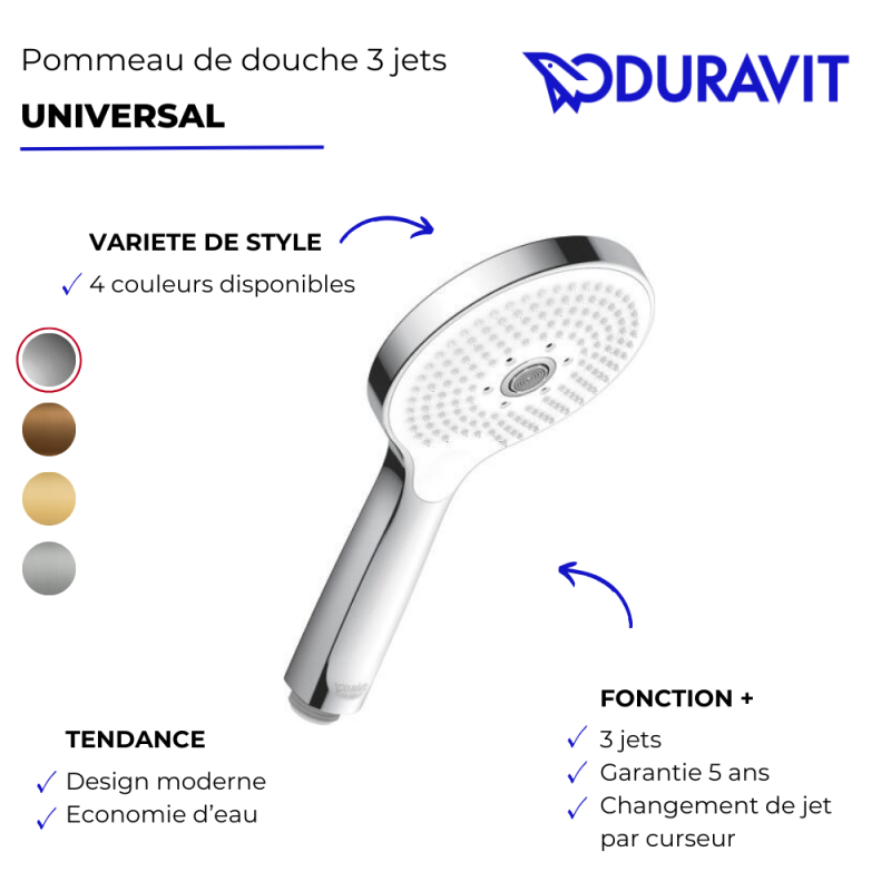 Les caractéristiques du pommeau de douche DURAVIT Universal :