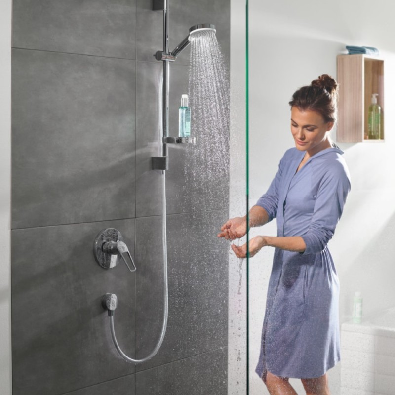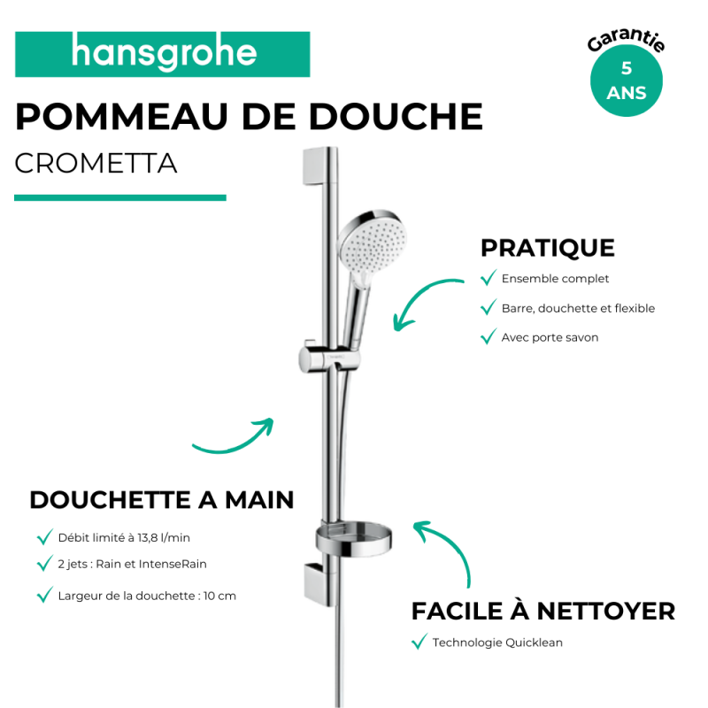 Les avantages du pommeau de douche HANSGROHE Crometta 2 jets flexible barre 65 cm et porte-savon blanc/chromé