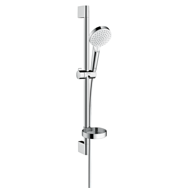 Les caractéristiques du pommeau de douche HANSGROHE Crometta 2 jets flexible barre 65 cm et porte-savon blanc/chromé