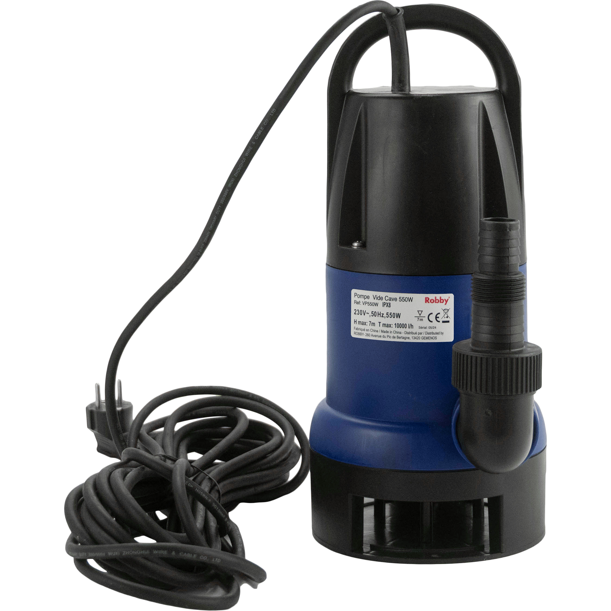 vp550w - pompe immergée automatique à flotteur intégré 550w - La pompe vide-cave Robby VP550W, très qualitative, facilitera les opérations d'évacuation d'eau claires ou chargées. Outre le pompage d'une cave inondée, elle permet de vidanger une piscine pour préparer la période hivernale, et peut également être utilisée pour plusieurs autres applications.Sa puissance de 550W lui permettra d'obtenir un débit max. de 10000 litres par heure.Elle possède un câble d'une longueur de 10m, lui permettant d'être immergée jusqu'à 7m de profondeur tout en restant étanche et sécurisée. Son flotteur intégré permettra à la pompe Robby de se déclencher automatiquement. Elle peut également être réglée sur la position manuelle pour une utilisation ponctuelle en continue.