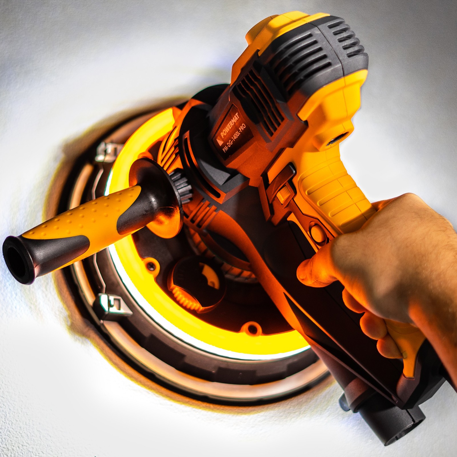 Ponceuse plâtre à main 1400W LED 360° sac et 12 disques de ponçage