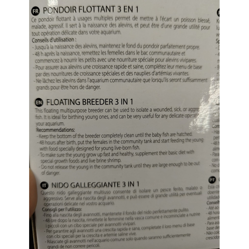 | Libellé | Pondoir flottant 3 en 1 taille: 21 x 10 x 10 cm pour aquarium |