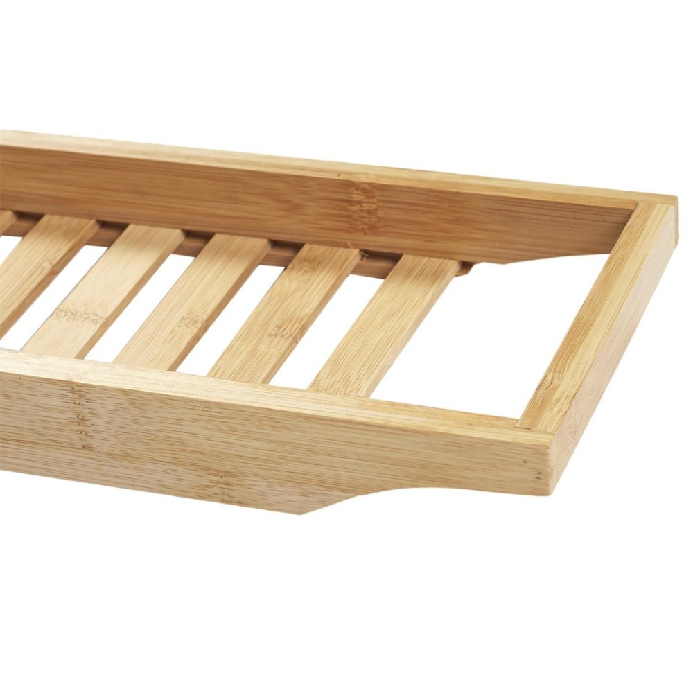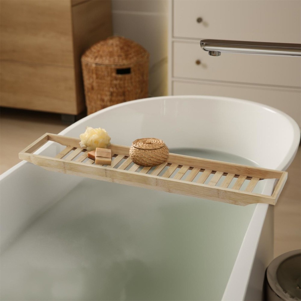 Transformez votre routine de bain en une expérience de spa luxueuse avec ce pont de baignoire en bambou.