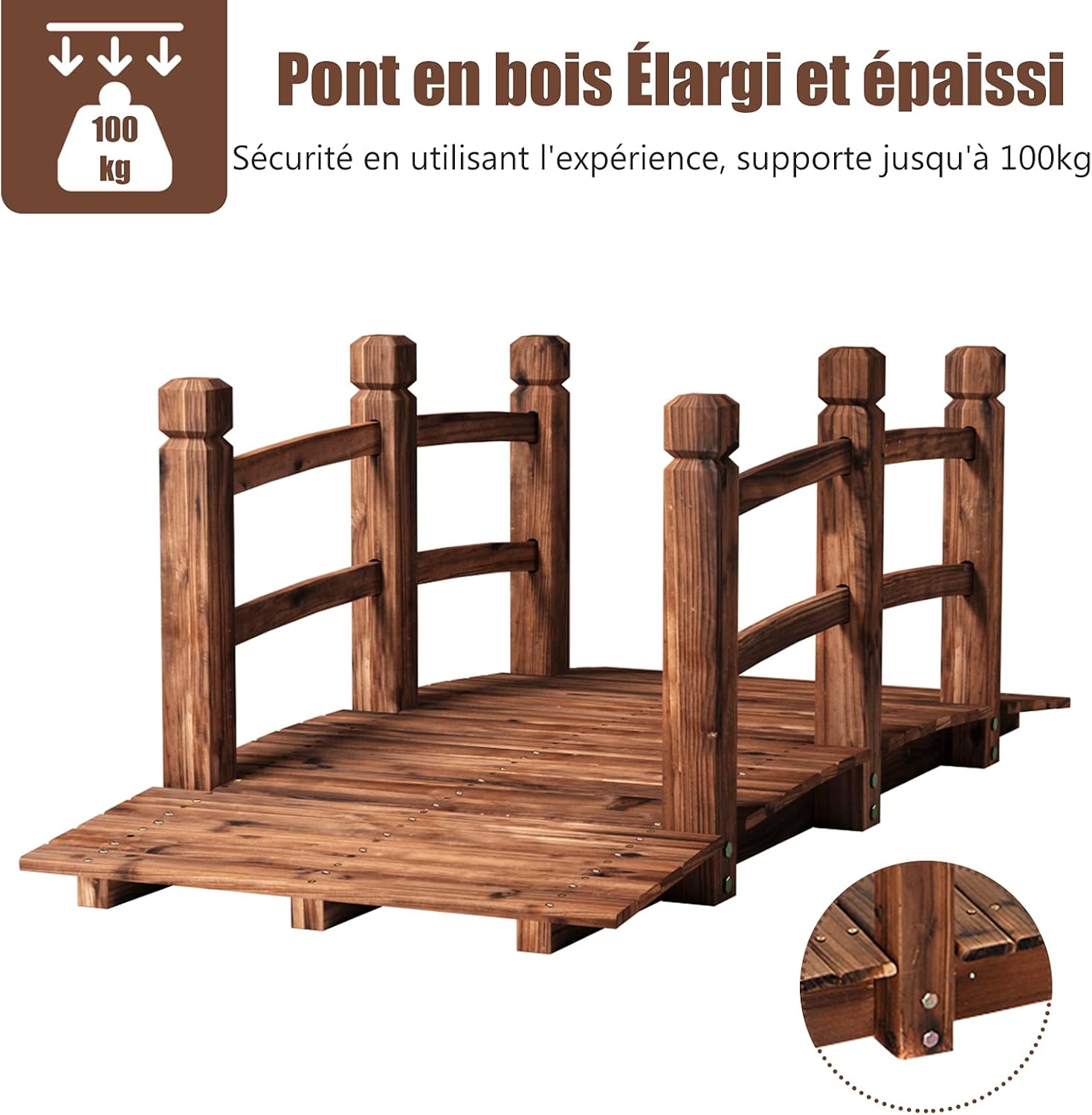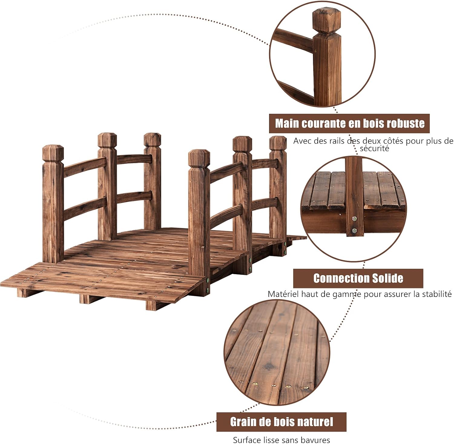 | Libellé | Pont en bois rustique et massif avec main courante, décoration de jardin pont d'étang |