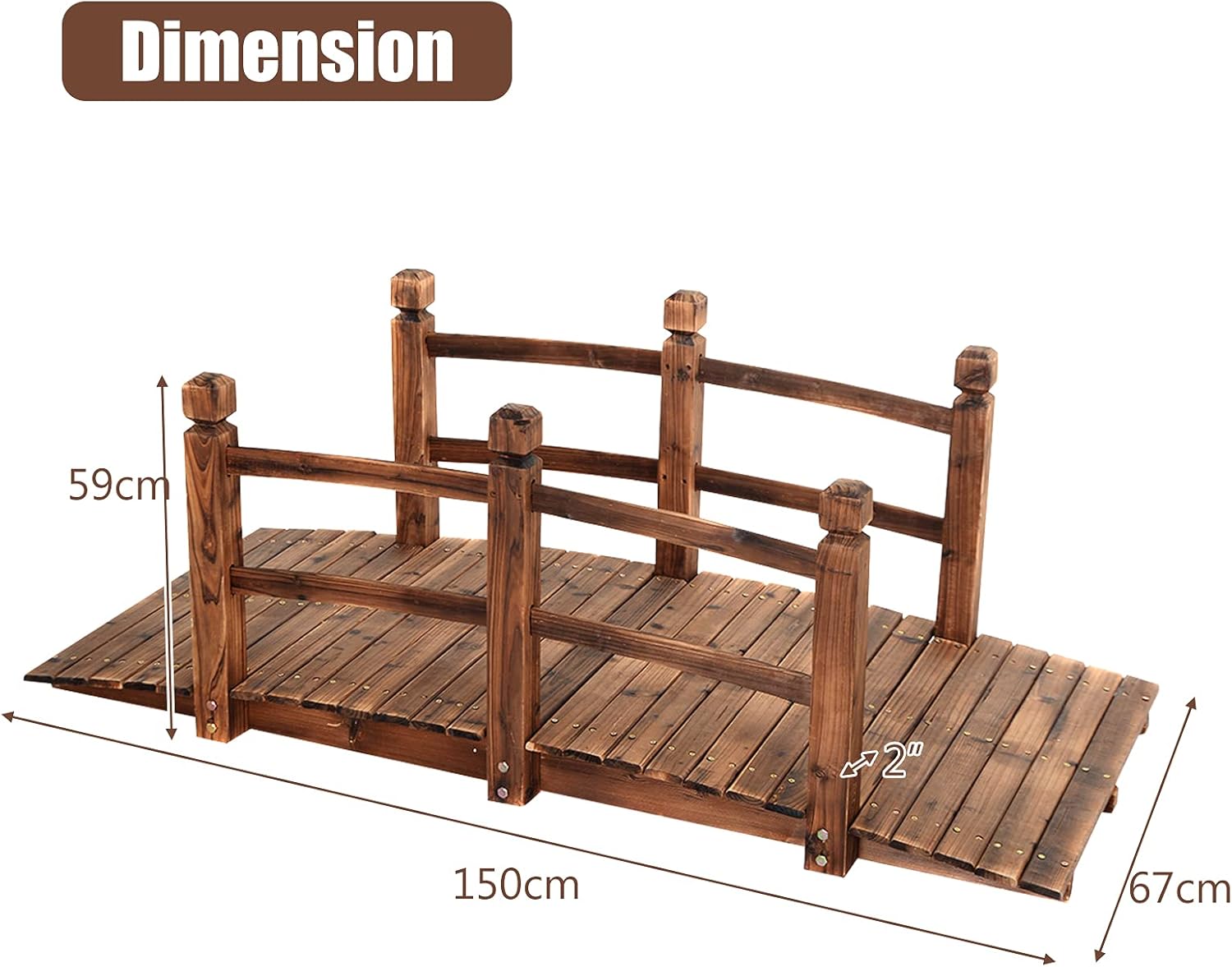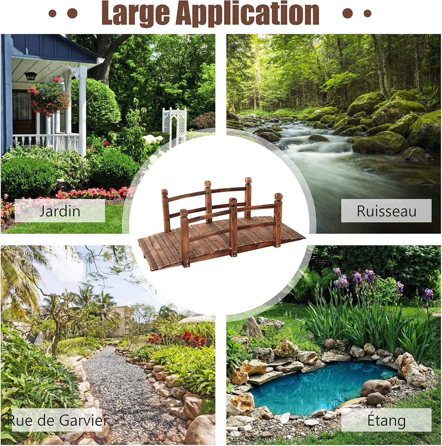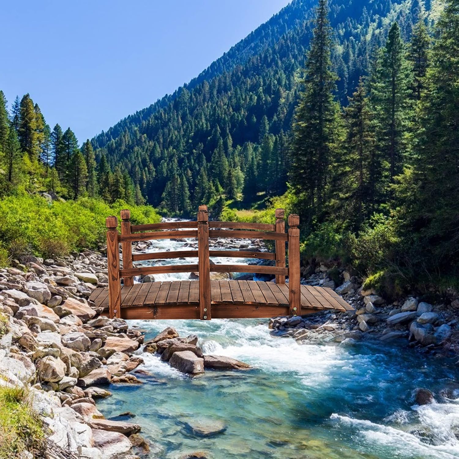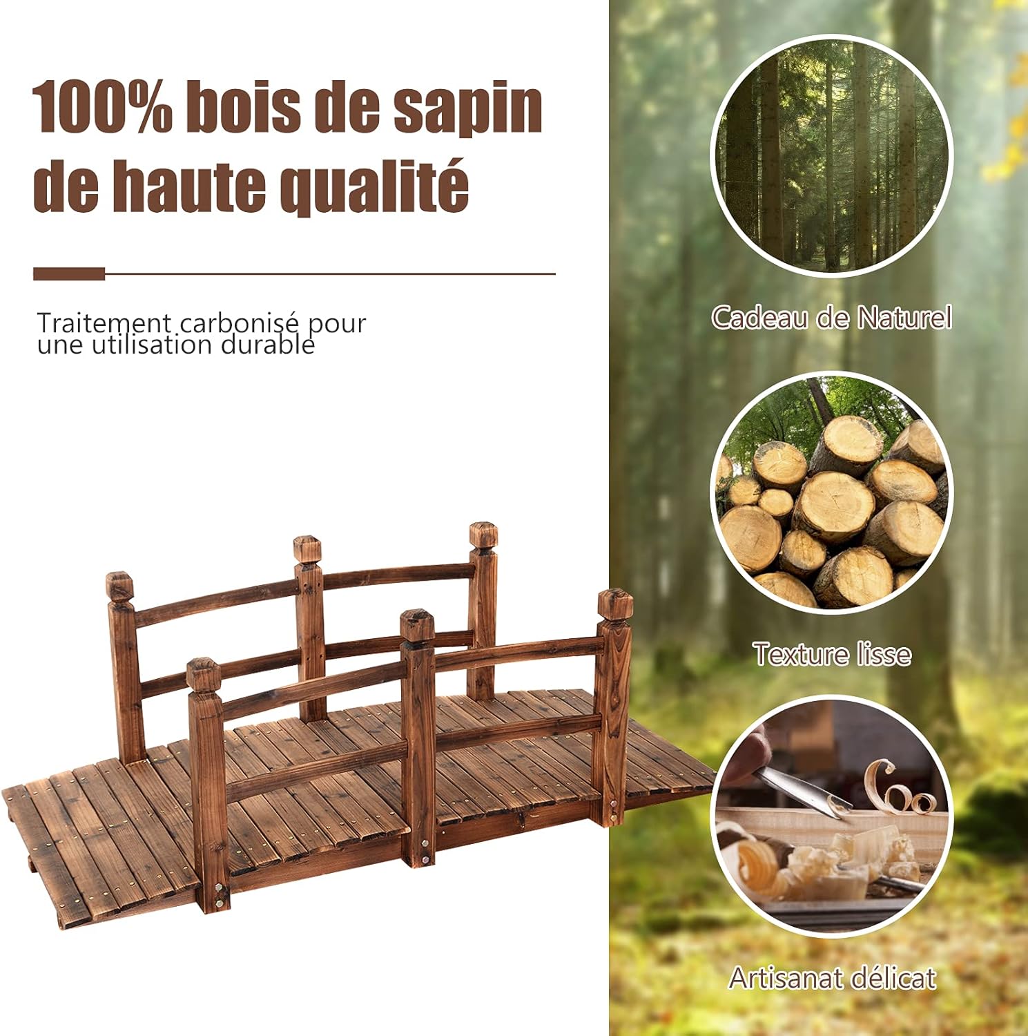 - Matériaux écologiques de haute qualité : Choisissez des sapins de haute qualité provenant de la nature, non toxiques et sans goût, et respectueux de l'environnement ne mettant pas la santé de l'homme en danger. Le pont en bois de jardin résiste à la corrosion, aux températures élevées et à l'eau.