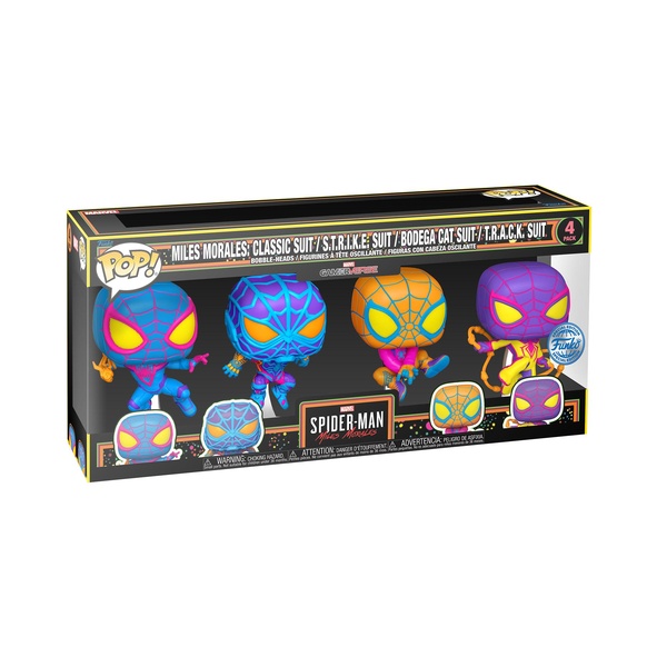 Un nouveau web-slinger fait son apparition ! Sous la tutelle de Peter Parker, Miles Morales est prêt à protéger les innocents dans ce pack exclusif de 4 pièces à la lumière noire ! Comprenant Pop ! Miles Morales (costume classique), Pop ! Miles Morales (Costume S.T.R.I.K.E.), Pop ! Miles Morales (Costume Bodega Cat), et Pop ! Miles Morales (costume T.R.A.C.K.), cet ensemble sera un ajout remarquable à votre collection de jeux Spider-Man : Miles Morales. Les figurines en vinyle mesurent environ 4,5 pouces de haut.
