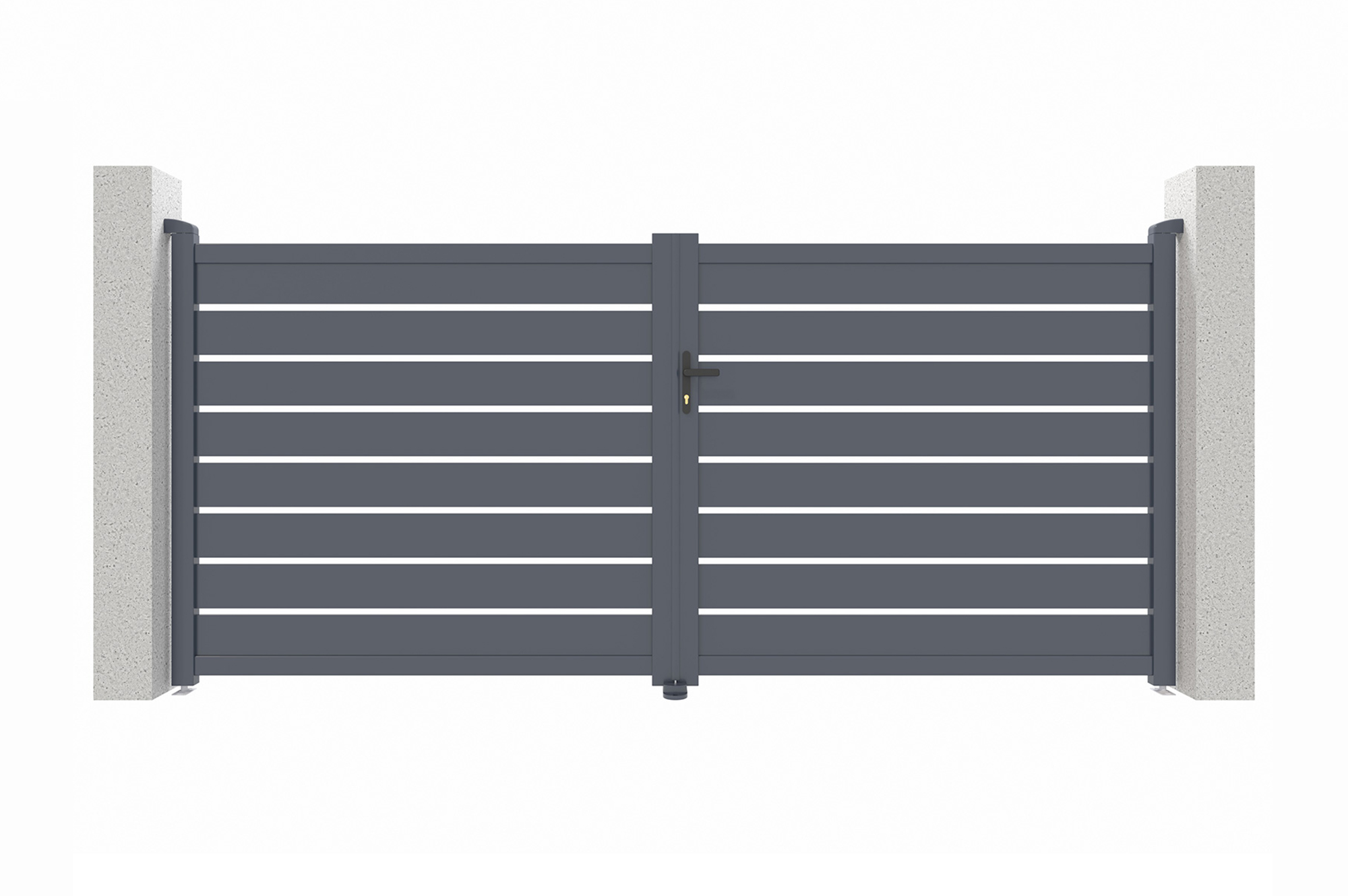 Découvrez notre portail battant ajouré en aluminium VOGEL, l’alliance parfaite entre esthétisme et sécurité pour votre entrée.