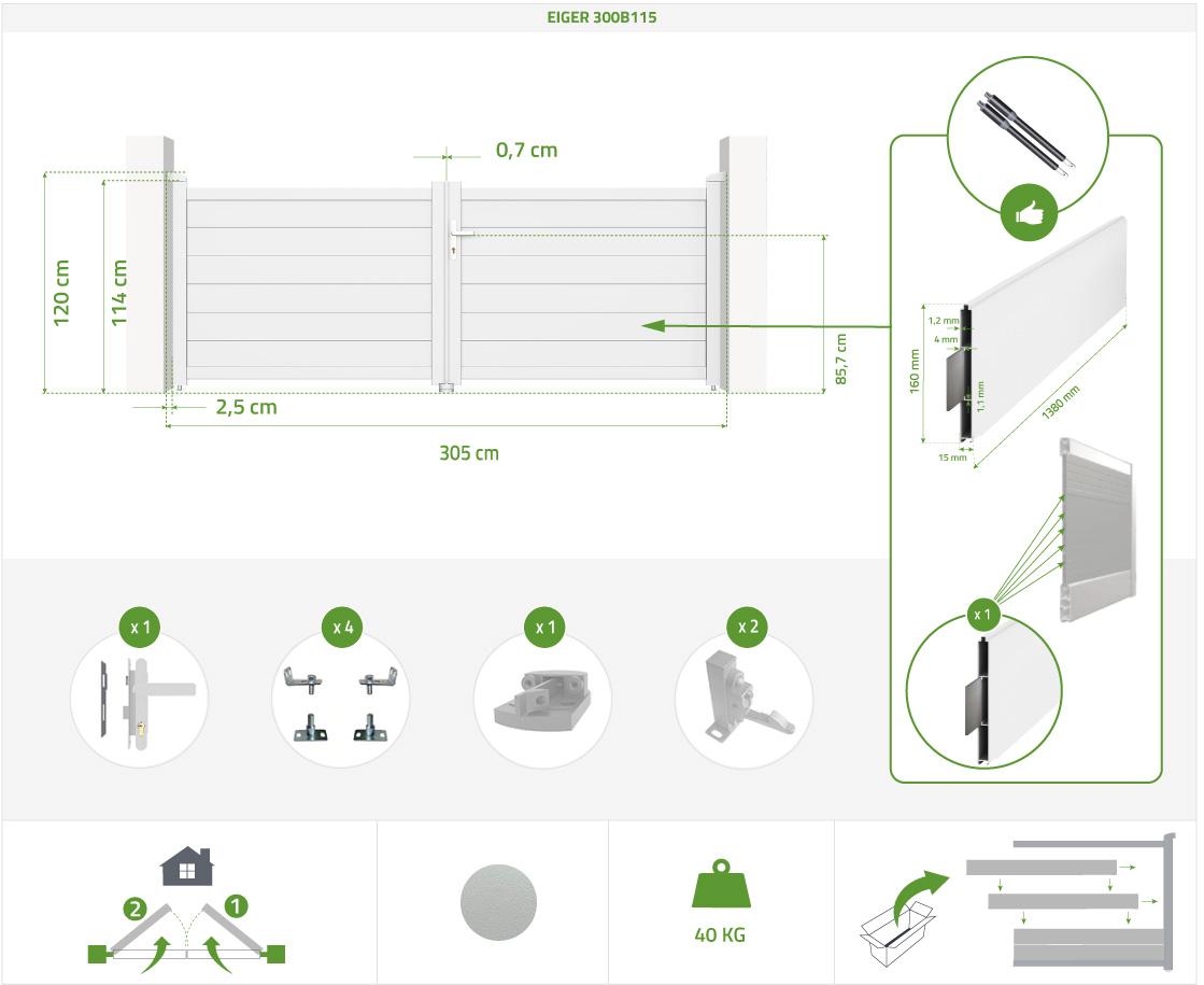 | Libellé | Portail alu battant 3m EIGER 300B115 BLANC |