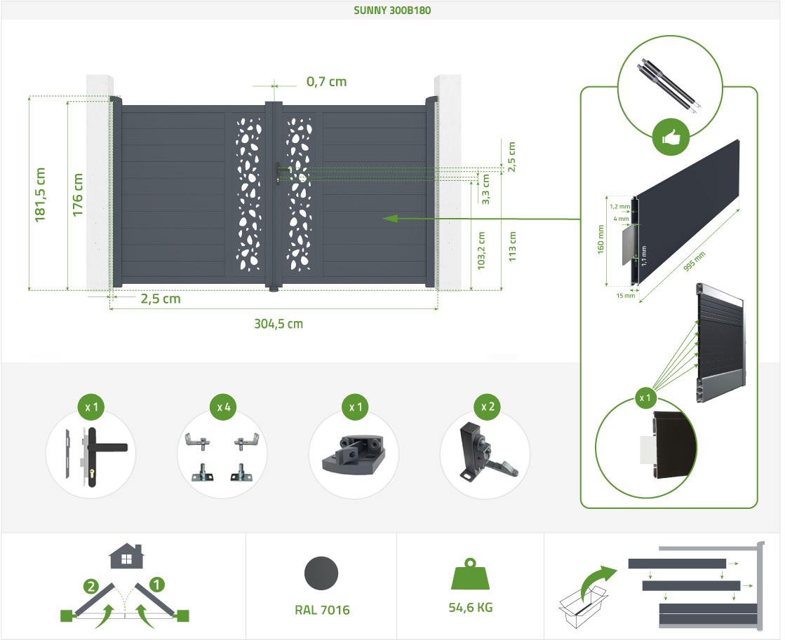 | Libellé | Portail alu battant 3m SUNNY 300B180 |