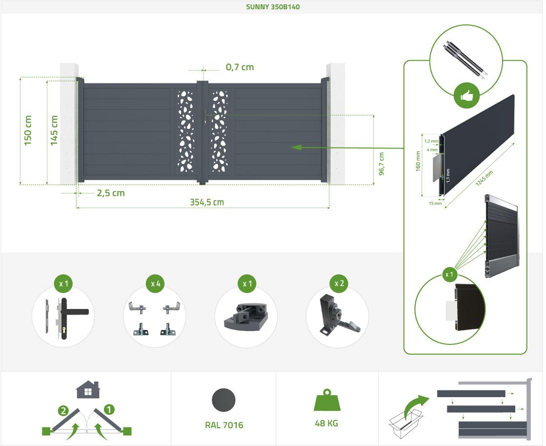 | Libellé | Portail alu battant 3m5 SUNNY 350B140 |