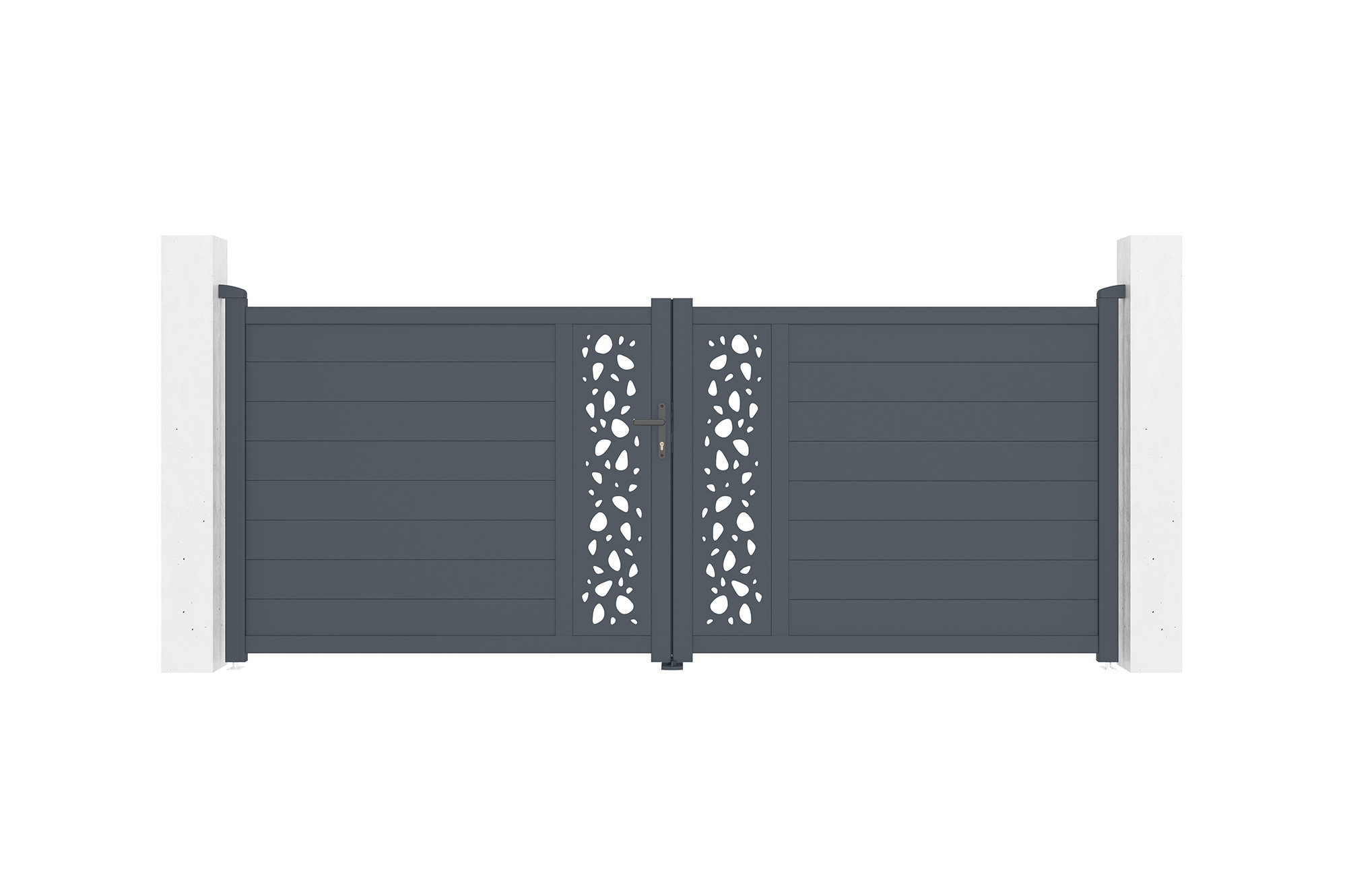 Découvrez notre portail battant SUNNY, véritable déclaration de style et de sophistication grâce à ses plaques décoratives au motif "galets", rappelant la tranquillité d'un jardin zen.
