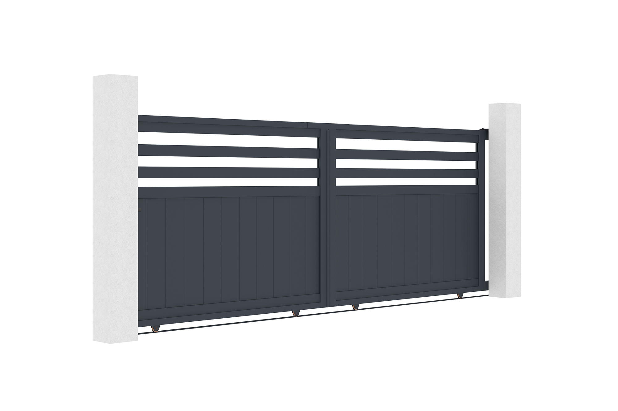 Découvrez notre portail coulissant semi-ajouré NEVIS, le compromis parfait entre portail ajouré et portail plein afin de répondre à vos besoins d’intimité tout en préservant votre visibilité.