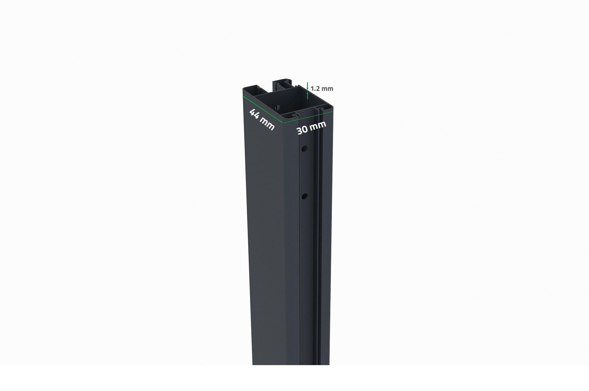 Pour assurer une installation sécuritaire et stable du portail coulissant, les poteaux doivent avoir une hauteur minimale de 160 cm et une largeur d’au moins 15 cm, en raison des dimensions du guide supérieur qui mesure 12 cm de large.