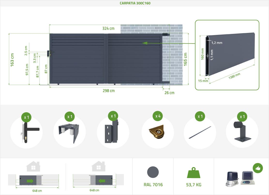 | Libellé | Portail alu coulissant 3m CARPATIA 300C160 |