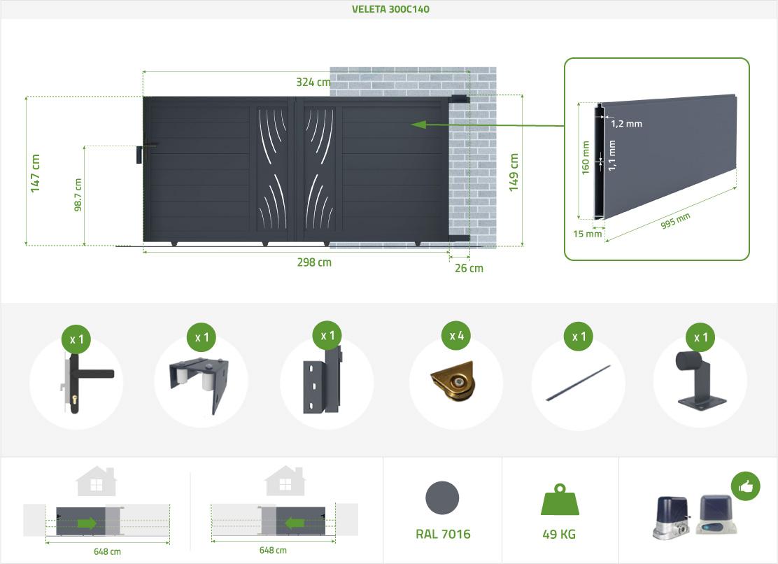 | Libellé | Portail alu coulissant 3m VELETA 300C140 |