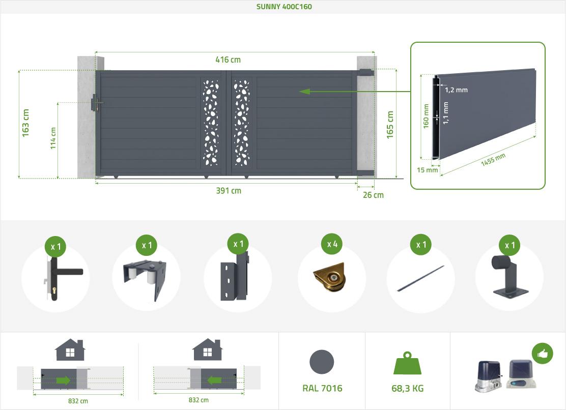 | Libellé | Portail alu coulissant 4m SUNNY 400C160 |