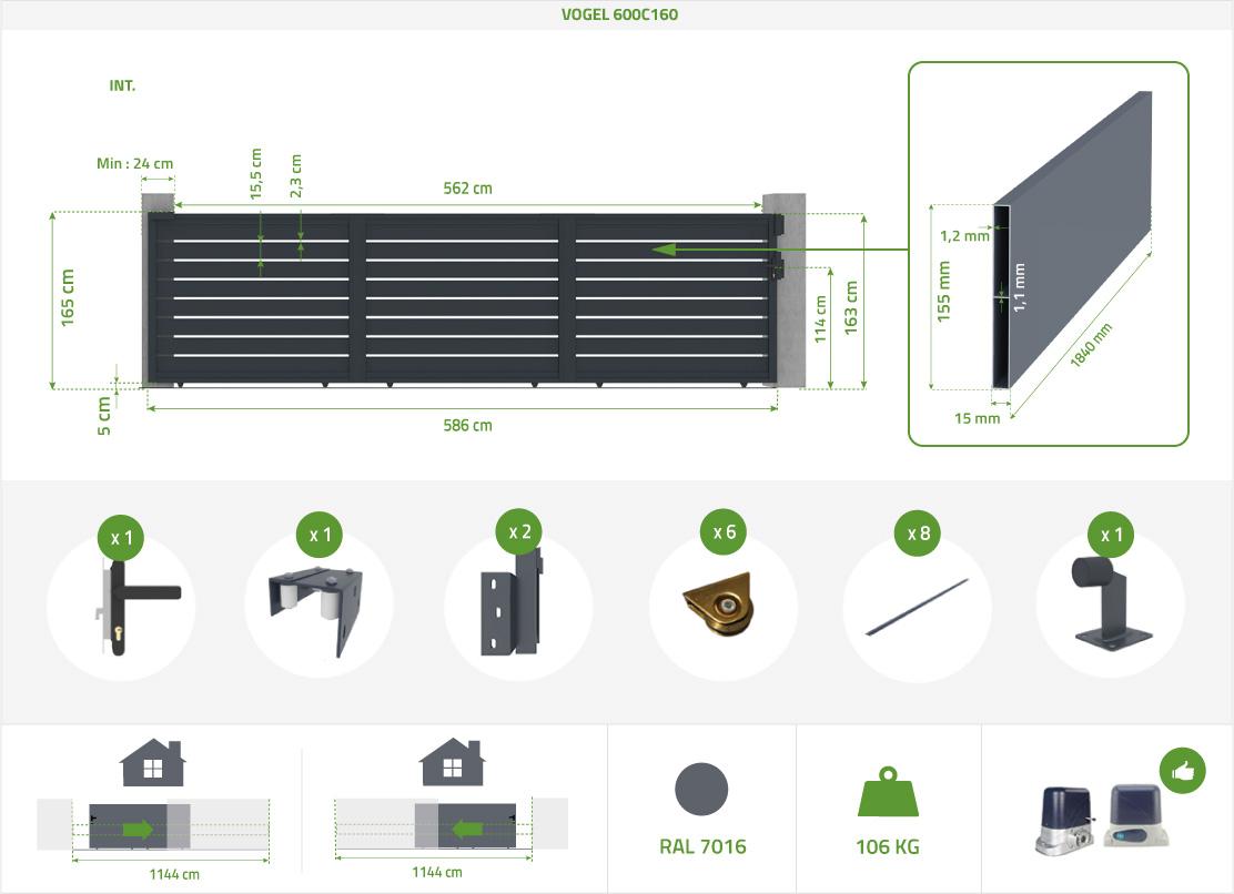 Libellé Portail alu coulissant 6m VOGEL 600C160