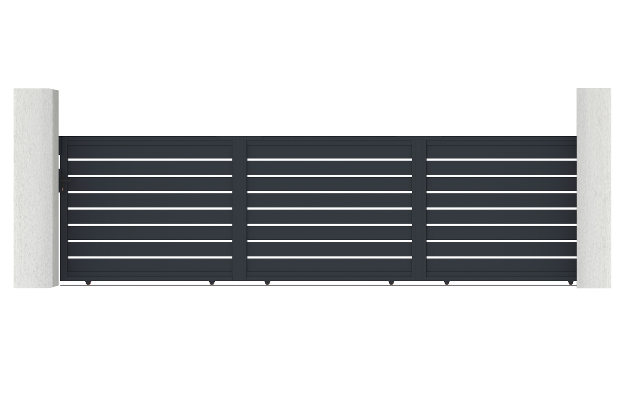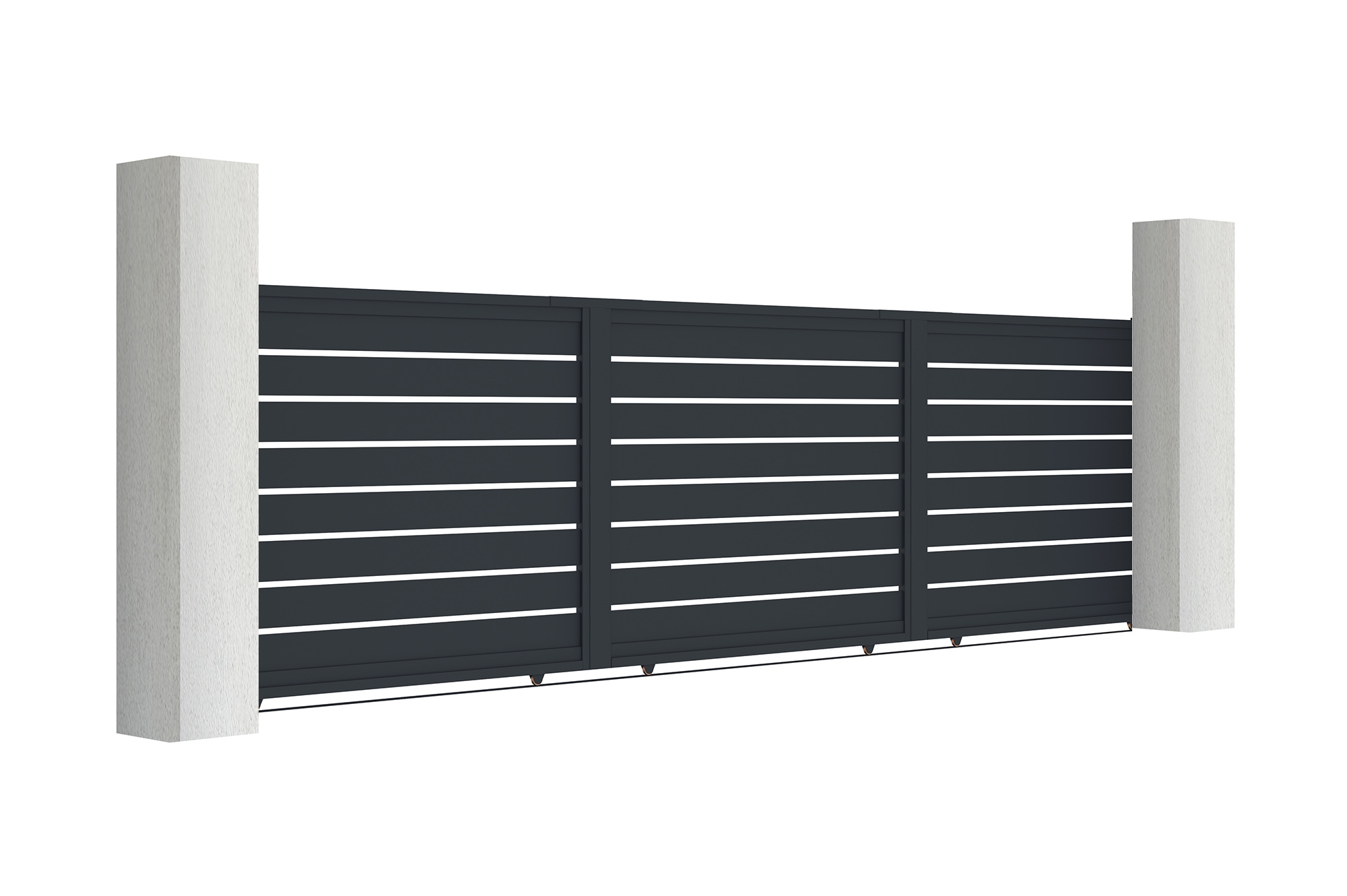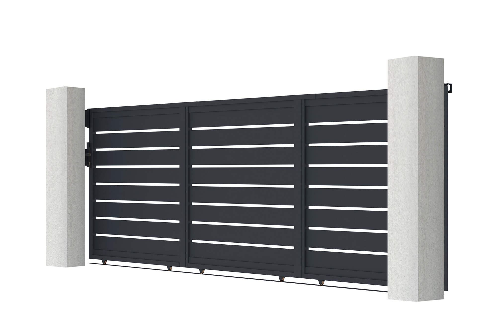 Découvrez notre portail coulissant ajouré en aluminium VOGEL, l’alliance parfaite entre esthétisme et sécurité pour votre entrée.