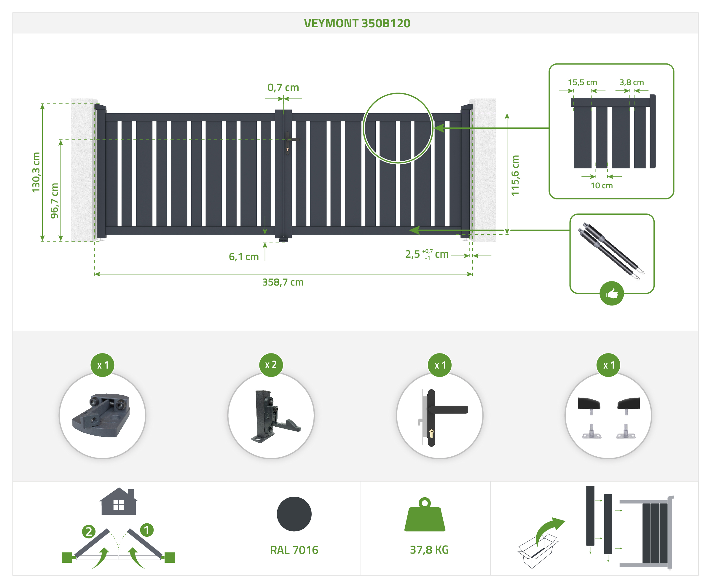 | Libellé | Portail battant 3,5m VEYMONT 350B120 aluminium gris |