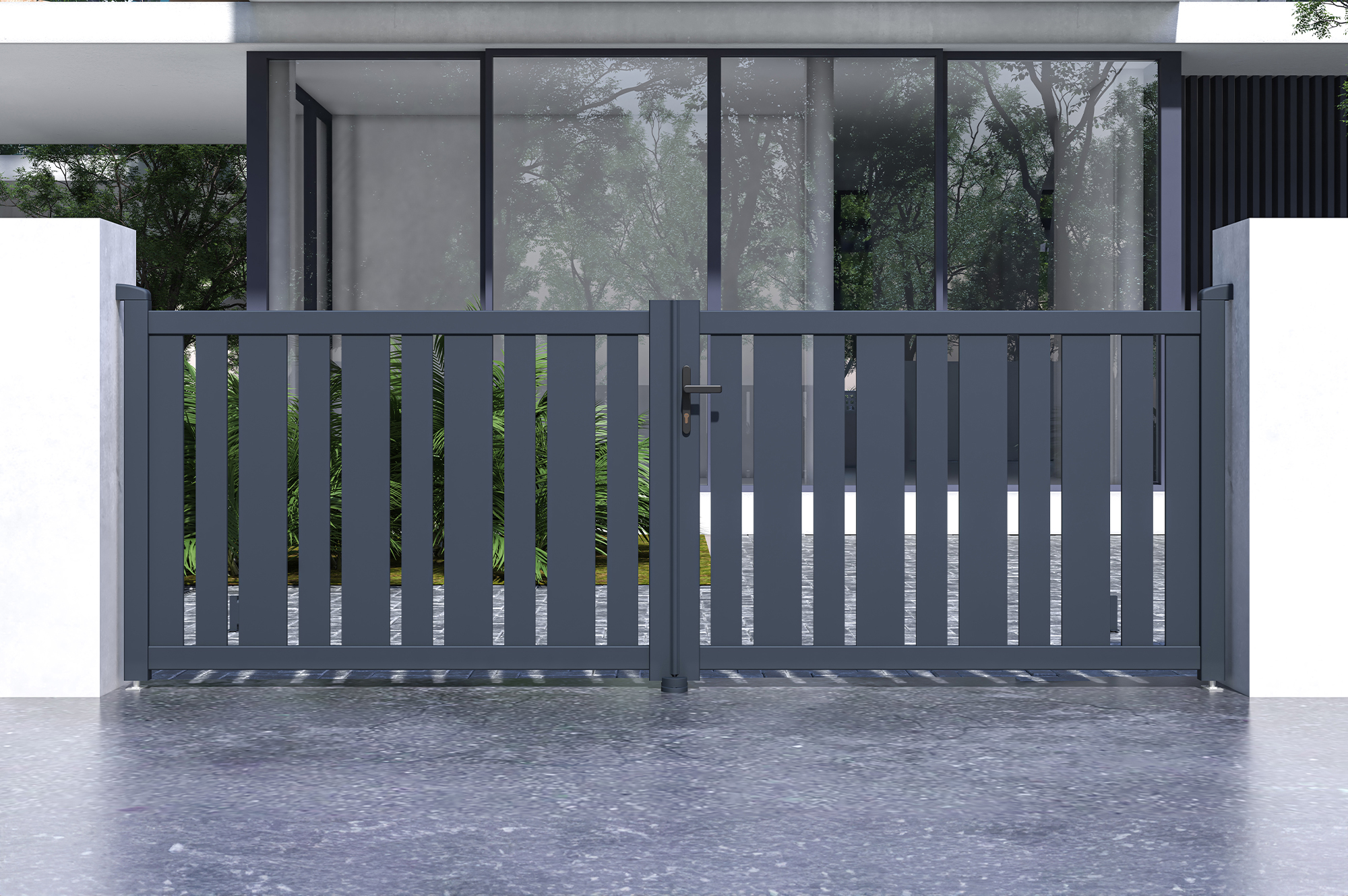 Ce portail ajouré est parfaitement adapté aux zones exposées au vent, offrant une solution idéale pour une meilleure circulation de l'air et une plus grande résistance aux conditions venteuses.
