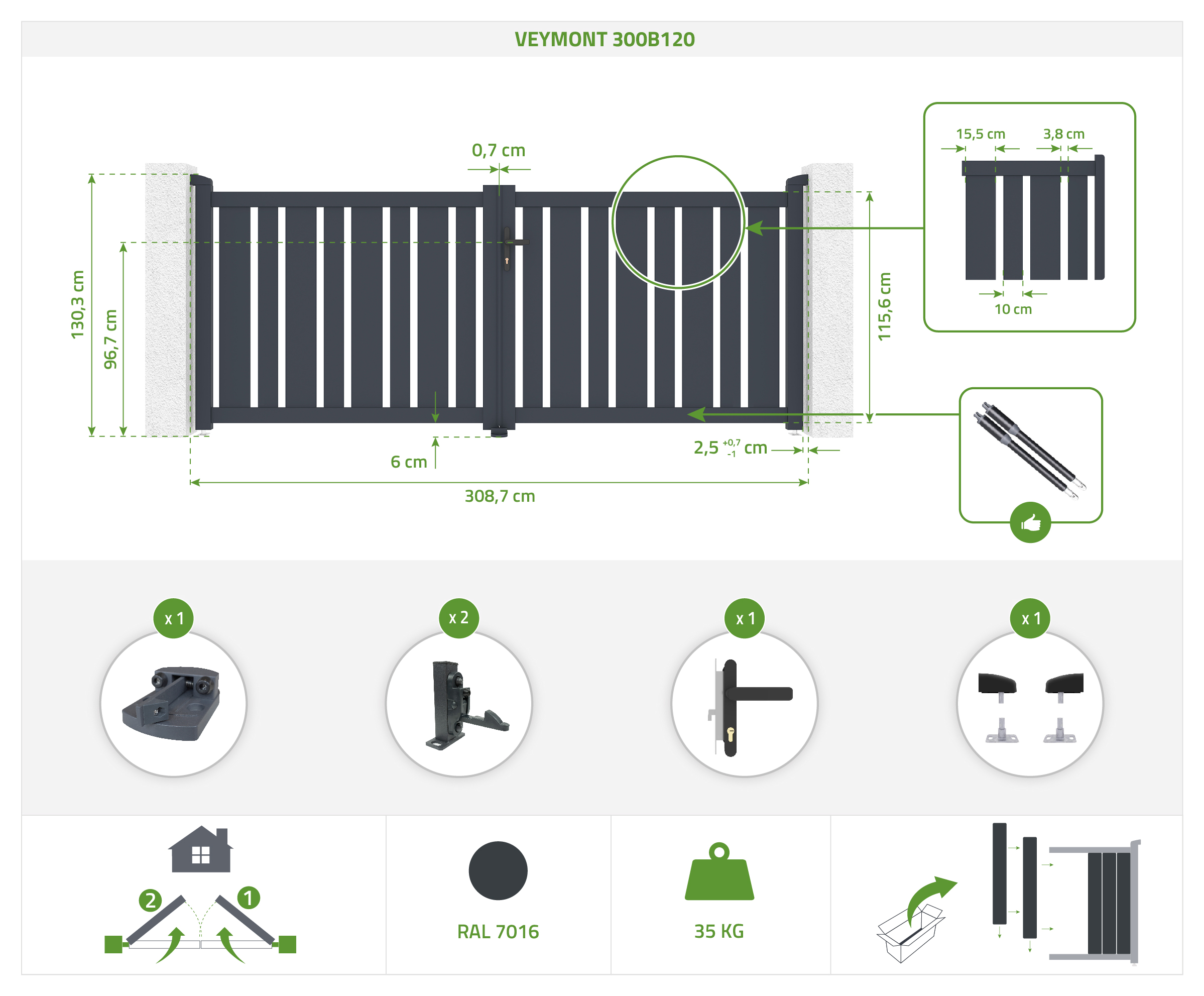 | Libellé | Portail battant 3m VEYMONT 300B120 aluminium gris |