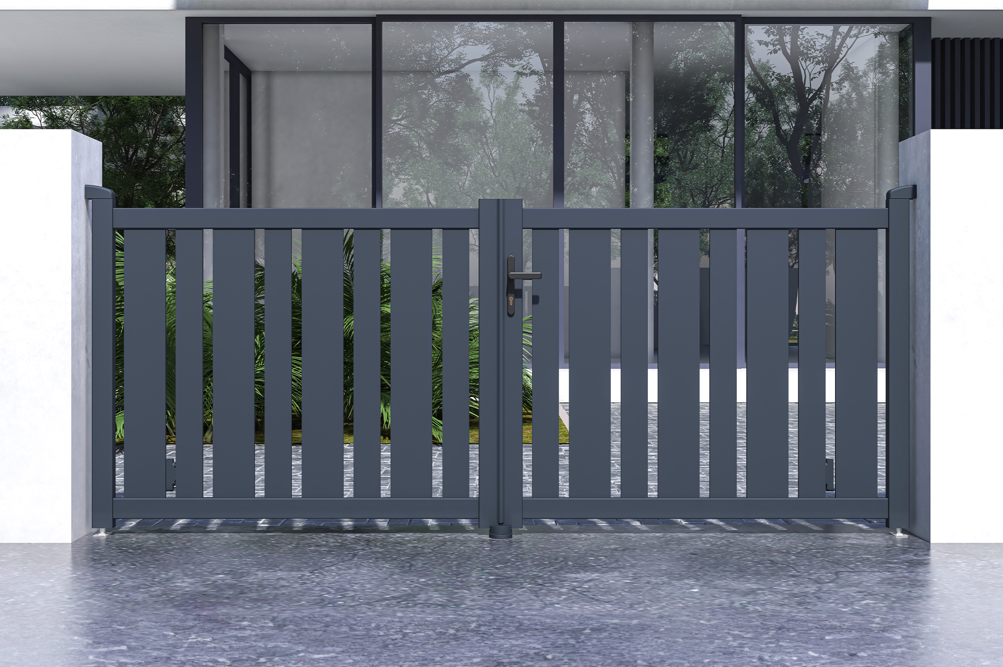 Ce portail ajouré est parfaitement adapté aux zones exposées au vent, offrant une solution idéale pour une meilleure circulation de l'air et une plus grande résistance aux conditions venteuses.